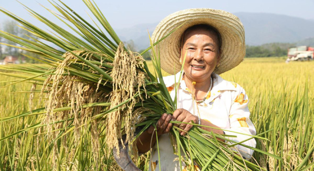近日,阳新县龙港镇建海生态种养殖家庭农场的2200亩中稻喜迎丰收,亩产约1300斤的好收成让田间地头充满喜悦。