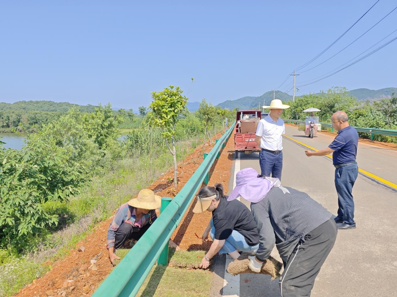县交通运输局和枫林镇政府高度重视此项工作,自26日起每日派代表到兴枫线实地督导线路完善工作。29日下午,督导小组照例来到兴枫线,烈日炎炎下,一路上随处可见养护工人忙碌的身影:铺植草皮、填补路肩土、安装爱路护路宣传栏,确保道路整洁美观;专业队伍正在重新施划醒目标线,提升行车安全性;清扫车与人工配合,及时清理路面散落的泥土和石子。督导小组一边指导养护作业,一边顺手帮忙铺草皮、捡杂物。养护人员介绍道:“6月初省里就要来调研验收了,我们都希望把这条路最美的样子呈现给调研组,争取成功创建美丽农村路!”