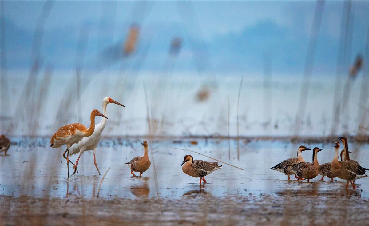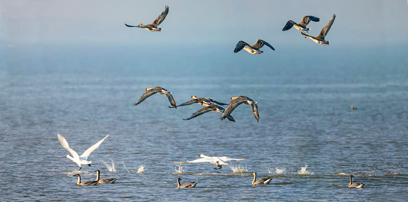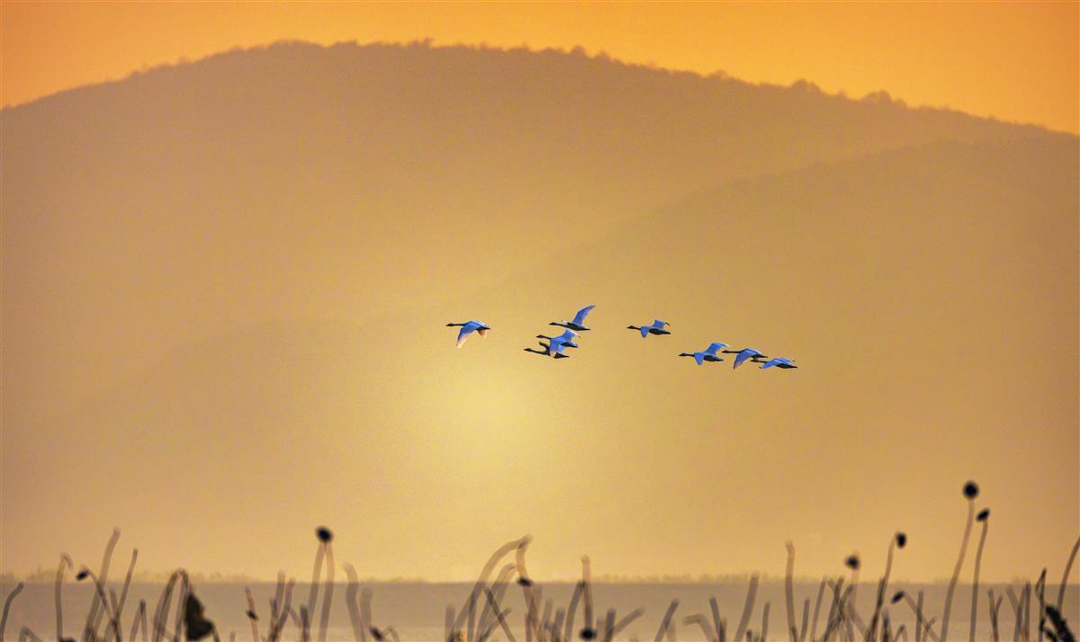 11月5日,当《湿地公约》第十四届缔约方大会在武汉举行时,100多公里外的阳新网湖湿地已是一片欢腾。当清晨第一缕阳光洒落在微波粼粼的湖面,平静的网湖慢慢变得热闹了起来,清脆的鸟鸣划破天际……这些跨越4000多公里、从遥远的西伯利亚飞到黄石的网湖湿地“客人”似乎知道,这个《湿地公约》大会,是为她们提供一个更温暖的家。