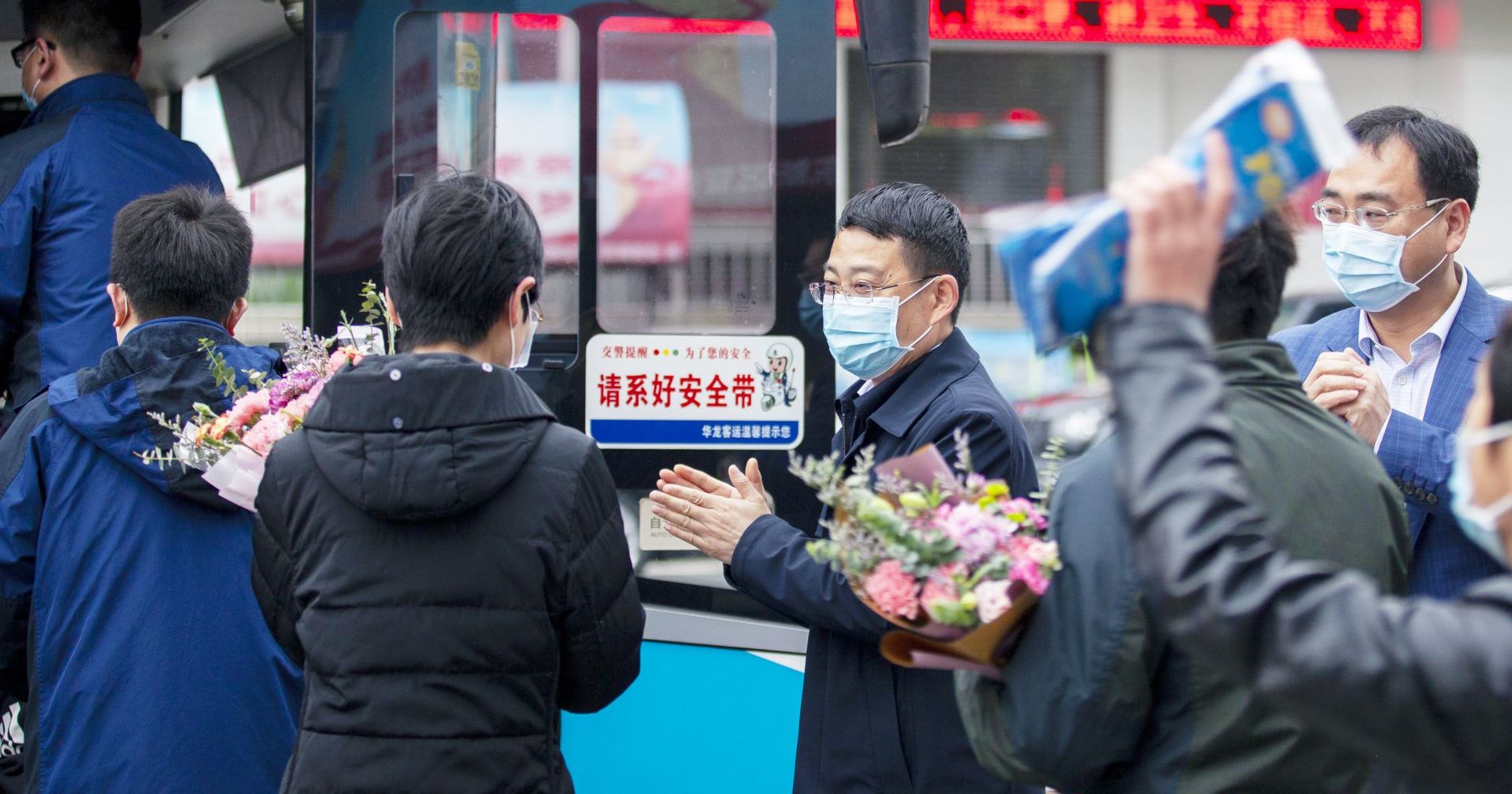 7时许,王建华、明进华、黄锡钢、徐德世、杨波、华黄河、韩顺东、蔡暖心、诸建平等县领导与县人民医院、中医院、妇幼保健院、三医院的医务工作者纷纷与抗“疫”战友合影留念,并向16名抗“疫”英雄敬献鲜花。