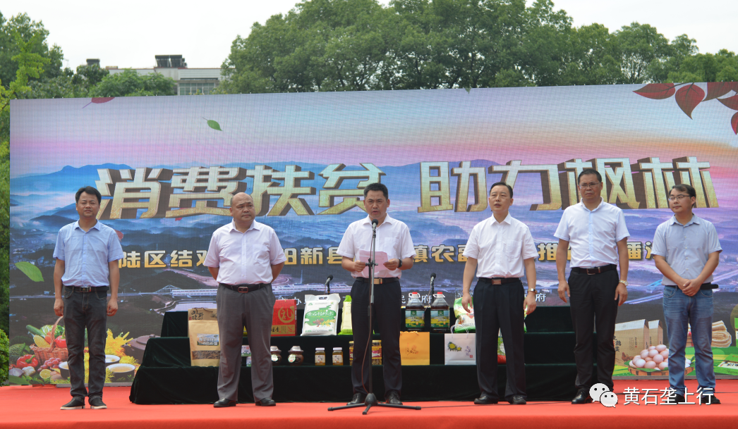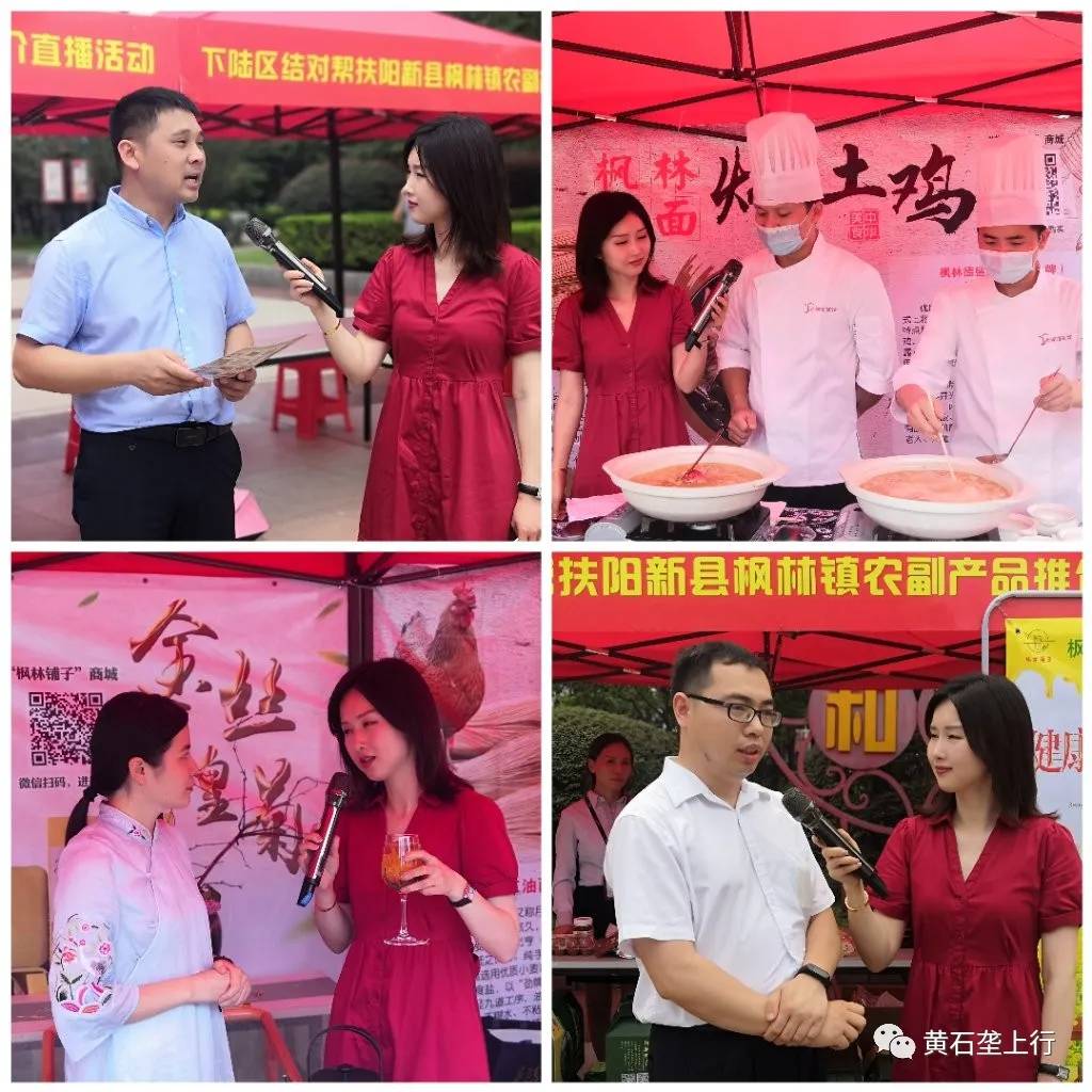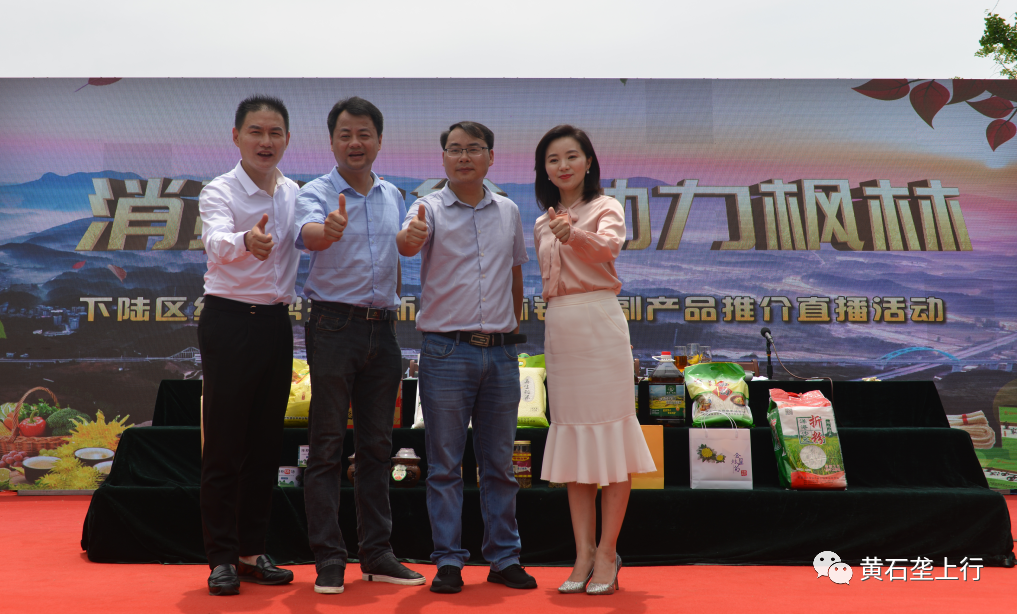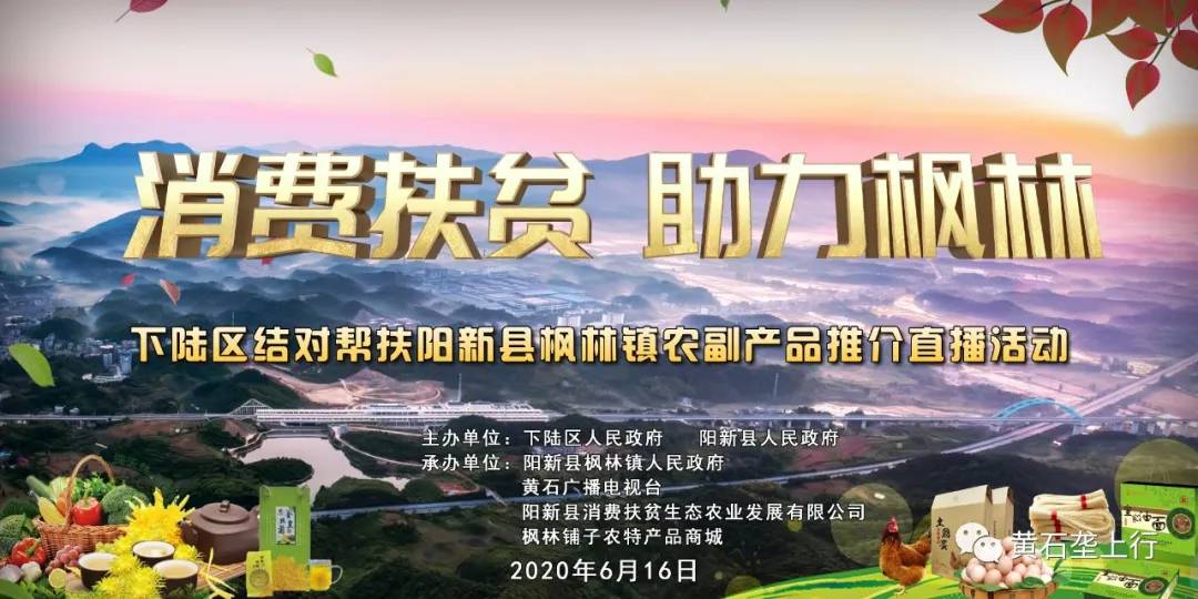 消费扶贫,助力枫林。6月16日上午10:00,下陆区结对帮扶阳新县枫林镇农副产品推介直播活动在下陆广场举行。
