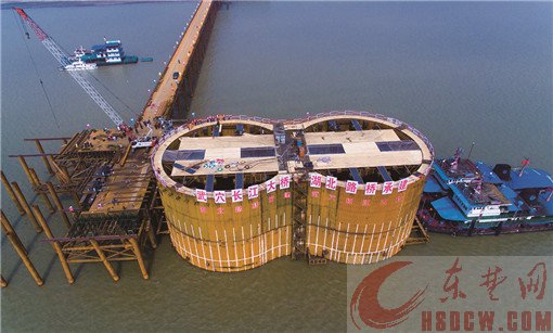 武穴长江大桥首节钢围堰下水