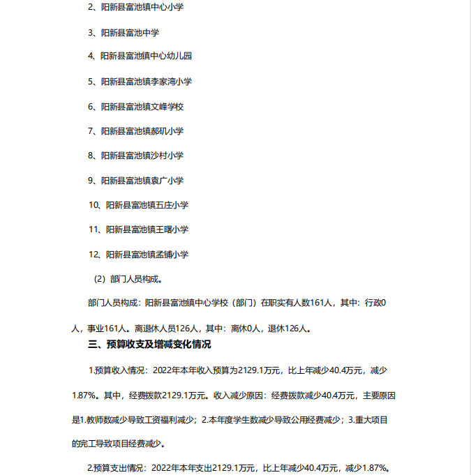 阳新县富池镇中心学校2022年预算公开情况说明