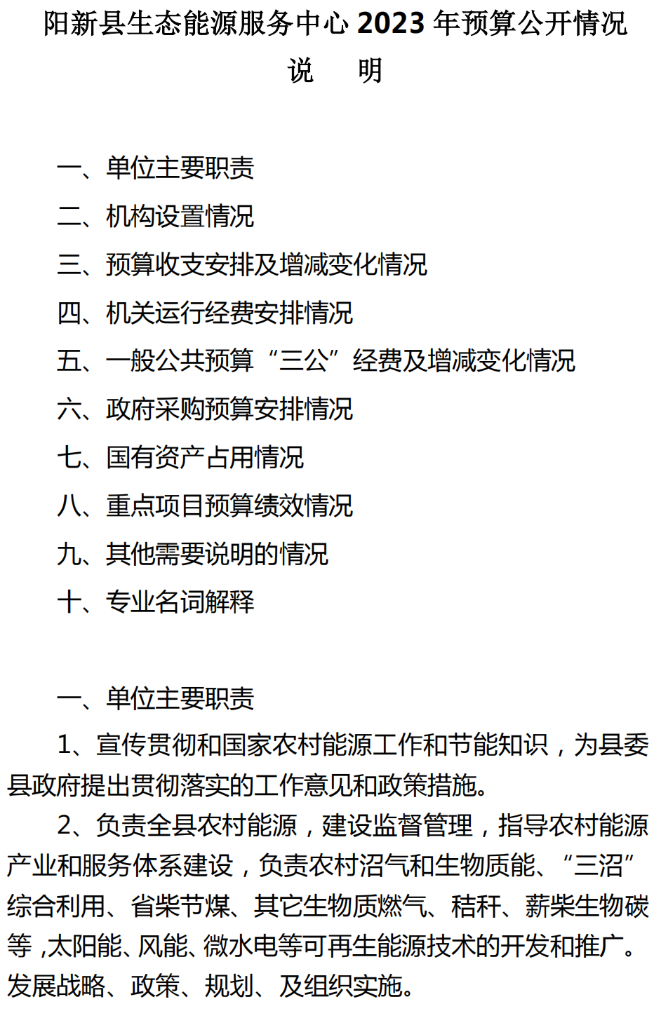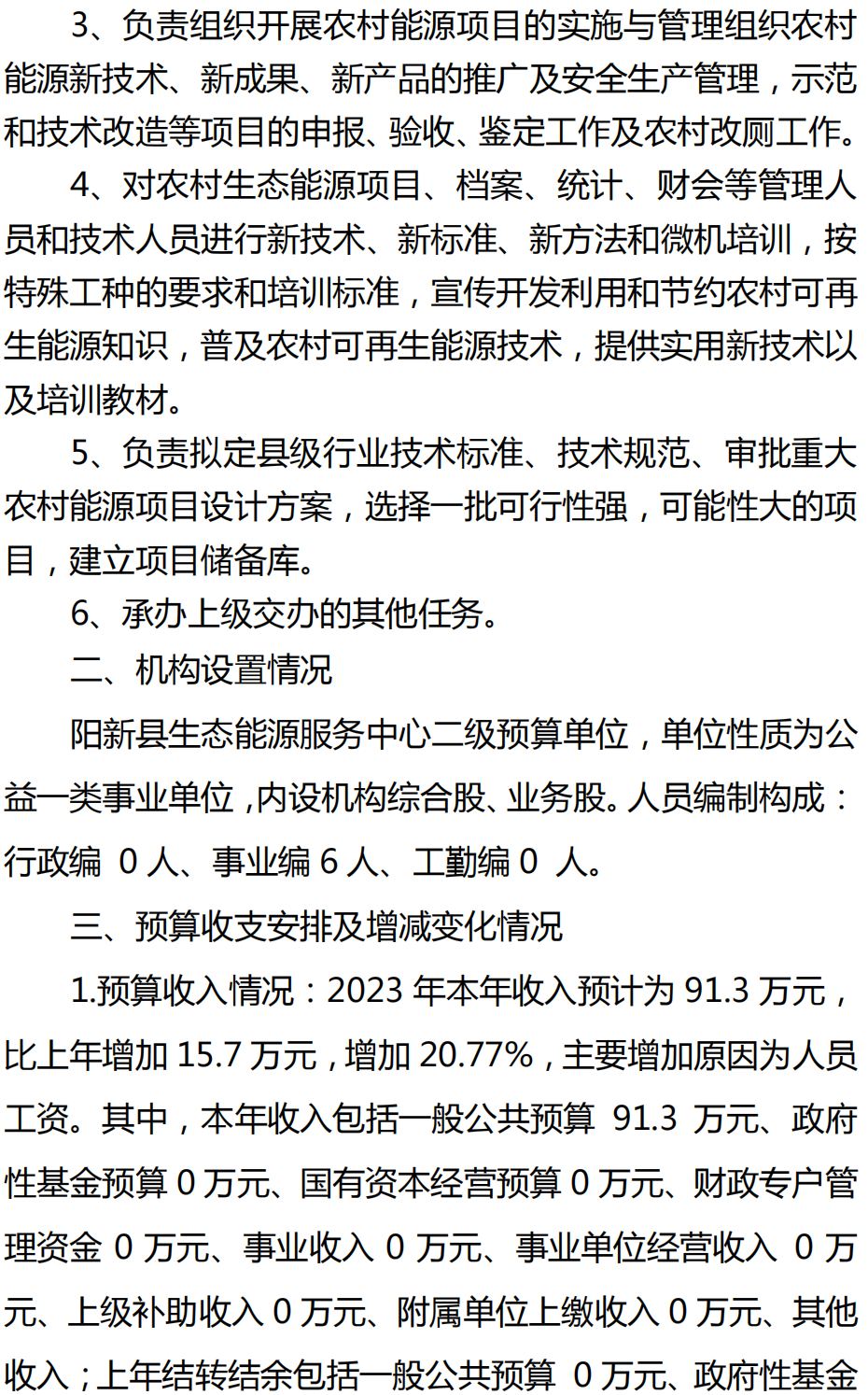 阳新县生态能源服务中心2023年本级预算公开情况说明