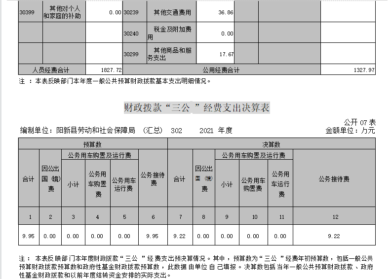 2021年“三公”经费财政拨款支出年初预算为9.95万元,支出决算为 9.23万元,较 上年相比减少0.05万元,减少55 %,完成年初预算的93%,主要原因为:本单位压缩 支出,节约为本。
