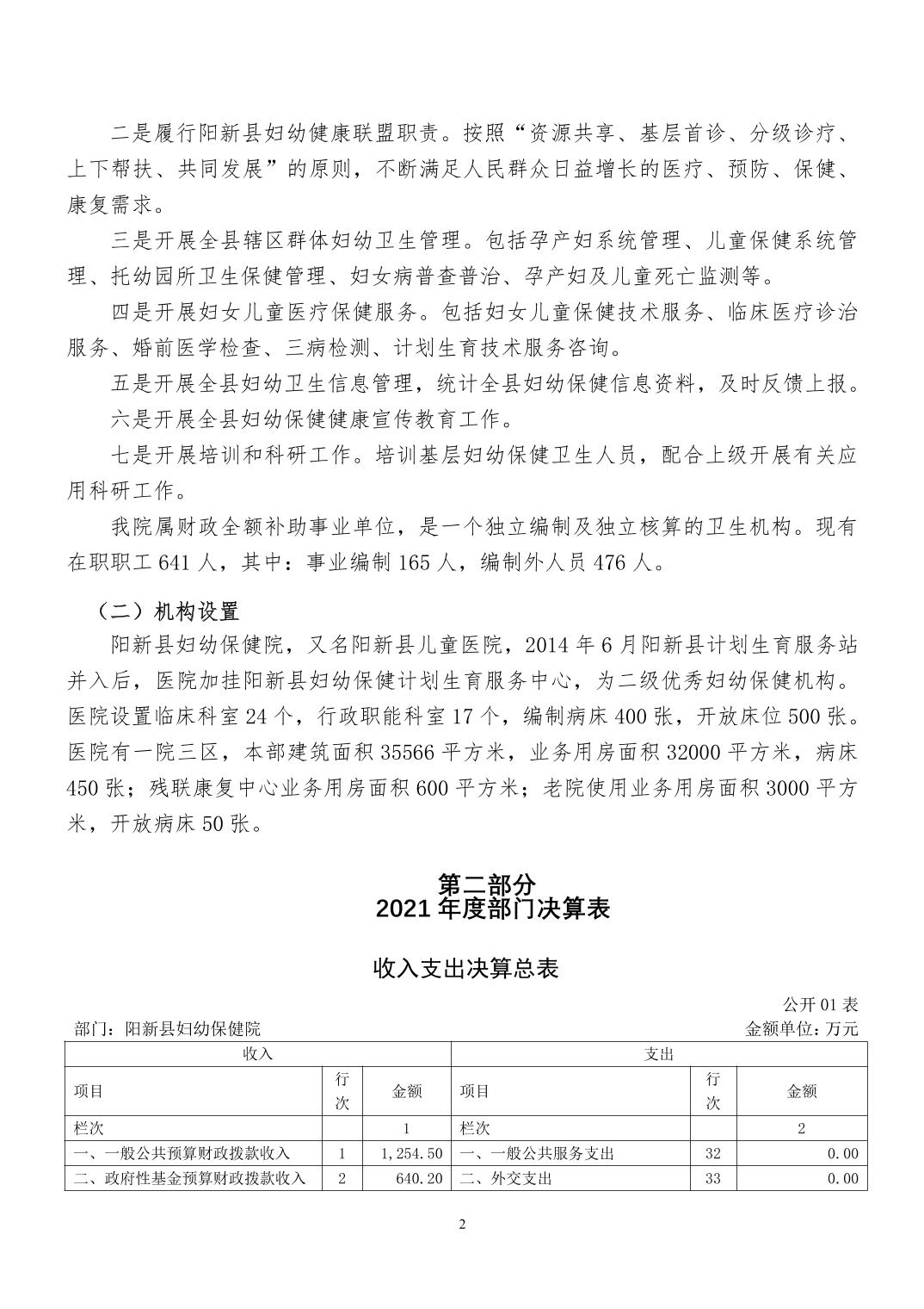 阳新县妇幼保健院 2021年部门决算