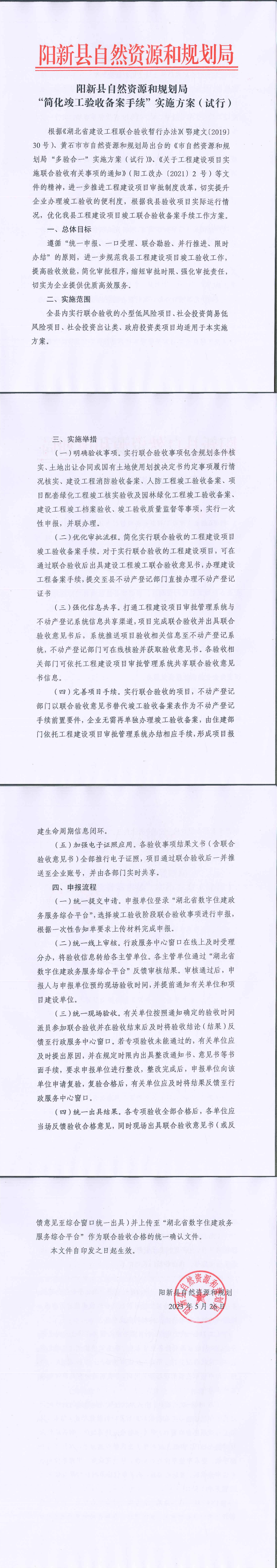 阳新县自然资源和规划局“简化竣工验收备案手续”实施方案(试行)