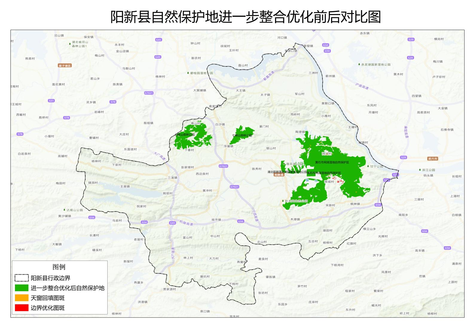 电子邮件:yxkwg@163.com联系人:柯文光联系电话:0714-7323331地址:阳新县自然资源和规划局附图:阳新县自然保护地进一步优化整合示意图
