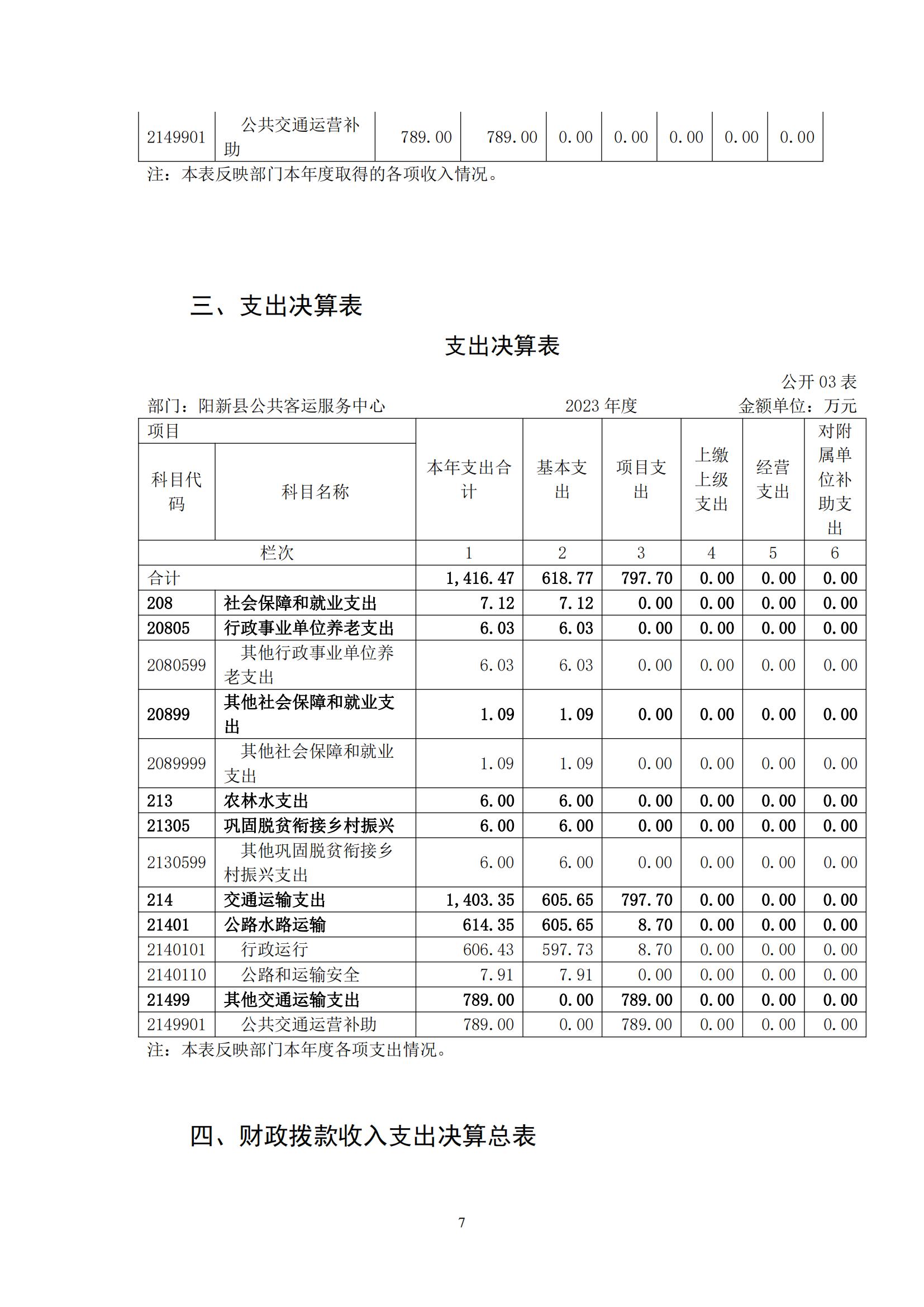 阳新县公共客运服务中心2023年度部门决算