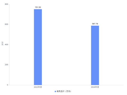 2024年度收、支总计均为587.78万元。与2023年度相比,收、支总计减少163.77万元,下降21.8%,主要原因是项目支出的减少。