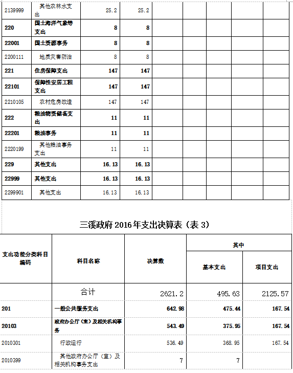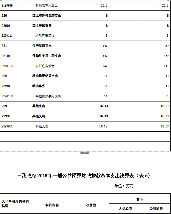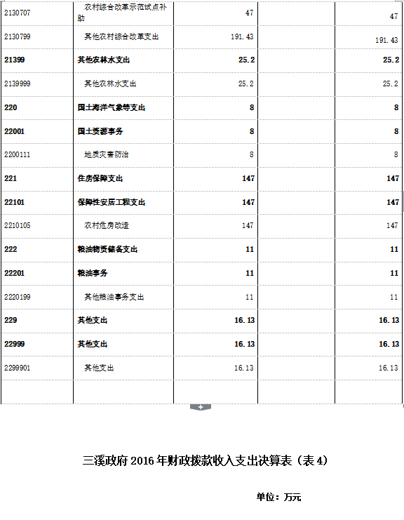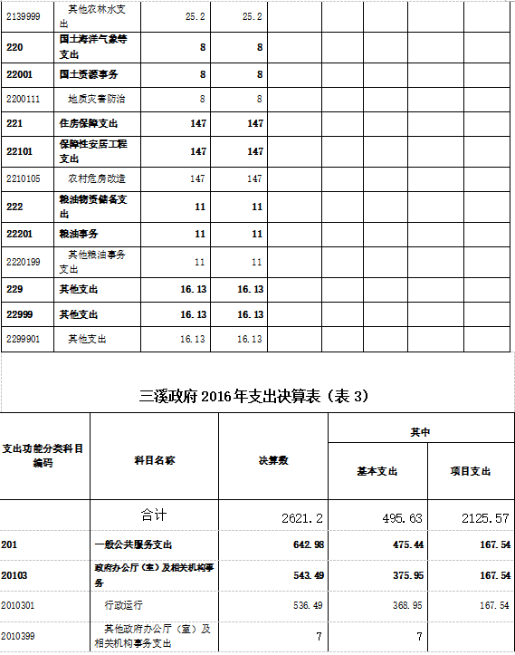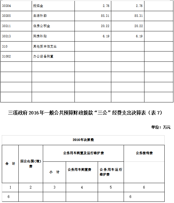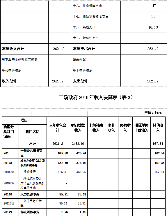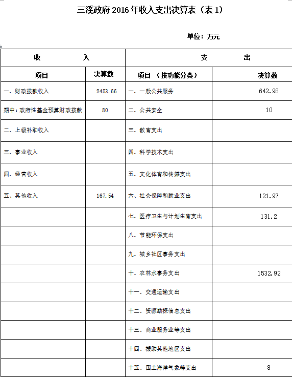 二、部门2016年部门决算表三、2016年三溪政府部门决算情况说明