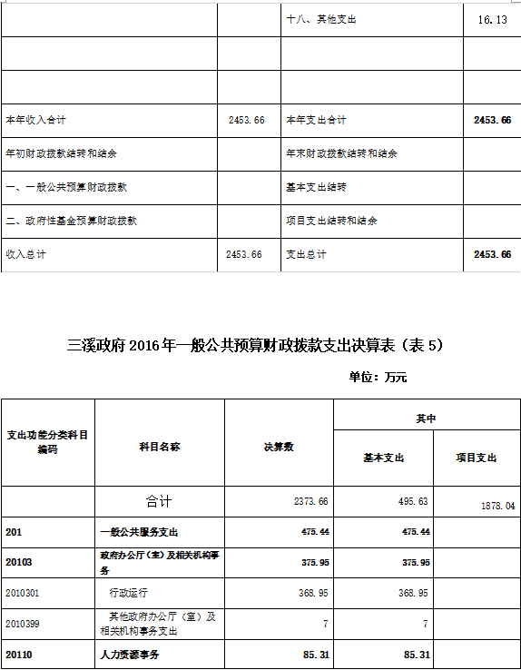 三溪政府财政拨款收入总决算 2453.66万元,比2015年相比减少1689.44   万元,财政拨款支出总决算 2453.66万元,比比2015年相比减少1689.44万元。主要原因是政府性基金预算大幅度缩减。