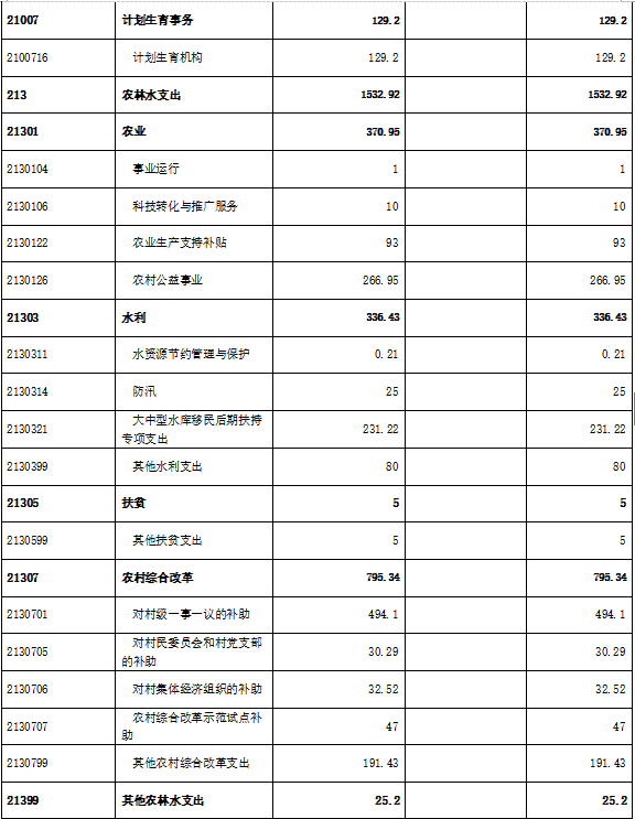 十、农林水事务支出类 1532.92 万元,占本年支出64.6 %