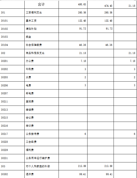 三溪政府公共预算财政拨款基本支出 495.63万元,其中人员经费474.45  万元,包括基本工资、津贴、社会保障缴费、绩效工资、其他工资福利支出、离休费、退休费、抚恤金、生活补助、医疗费、住房公积金、提租补贴、购房补贴,公用经费21.18万元,包括办公费、印刷费、手续费、水费、电费、邮电费、物业管理费、差旅费、因公出国(境)费、维修费、租赁费、会议费、培训费、公务接待费、被装购置费、委托业务费、工会经费、福利费、公务用车运行维护费、其他商品和服务支出、其他资本性支出。