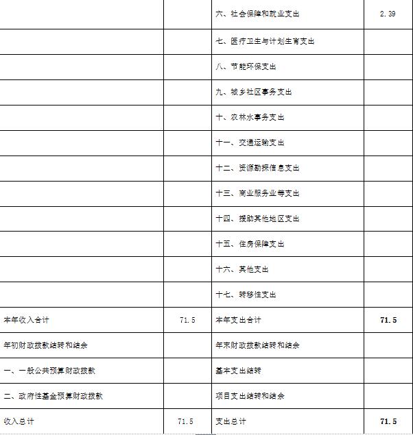 2016年部门决算公共预算财政拨款基本支出71.5 万元。公共预算财政拨款支出按支出功能分类情况如下: