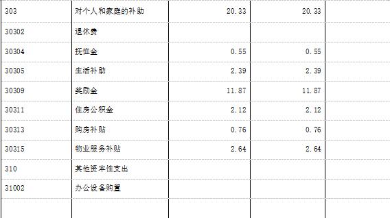 公共预算财政拨款基本支出 71.5万元,其中人员经费 68.92 万元,包括基本工资、津贴、社会保障缴费、绩效工资、其他工资福利支出、离休费、退休费、抚恤金、生活补助、医疗费、住房公积金、提租补贴、购房补贴,公用经费 2.58万元,包括办公费、印刷费、手续费、水费、电费、邮电费、物业管理费、差旅费、因公出国(境)费、维修费、租赁费、会议费、培训费、公务接待费、被装购置费、委托业务费、工会经费、福利费、公务用车运行维护费、其他商品和服务支出、其他资本性支出。