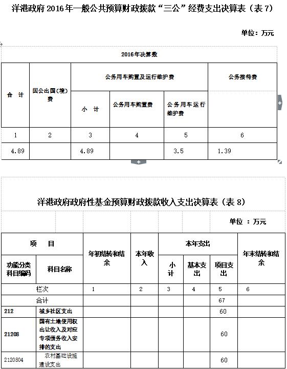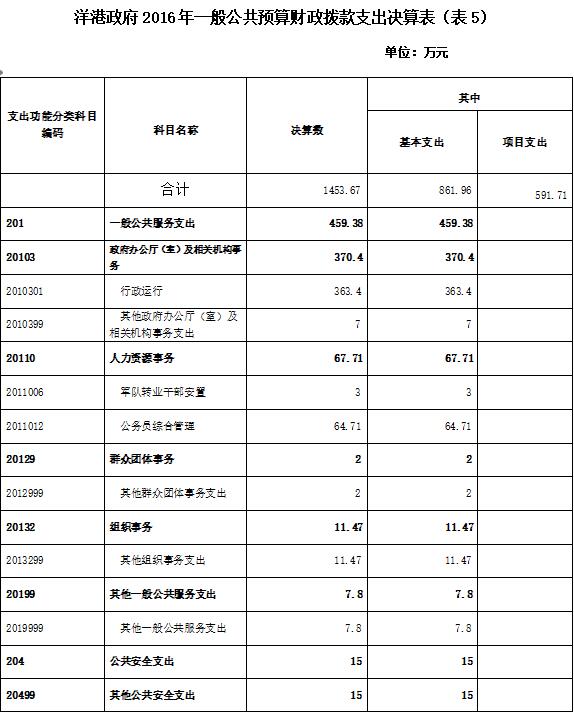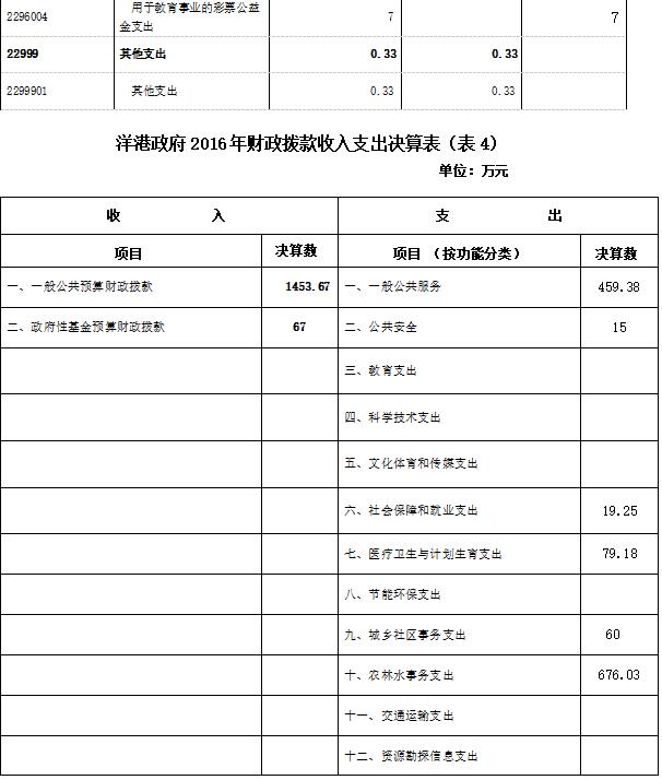 二、部门2016年部门决算表三、2016年洋港政府部门决算情况说明