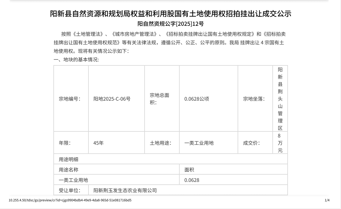 阳新县国有建设用地使用权挂牌出让公告 (阳自然资规告字[2025]12号)