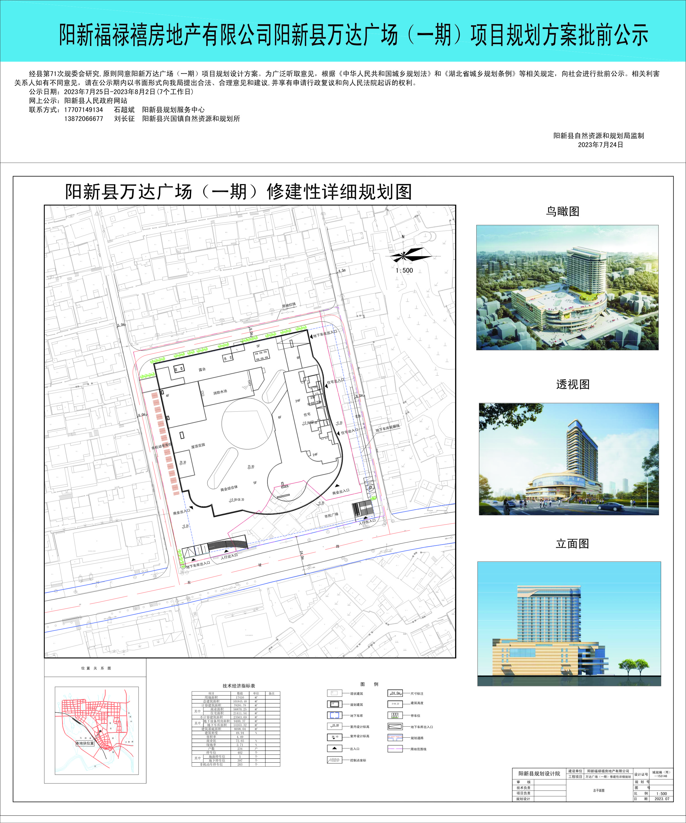 阳新福禄禧房地产有限公司阳新县万达广场(一期)项目规划方案批前公示
