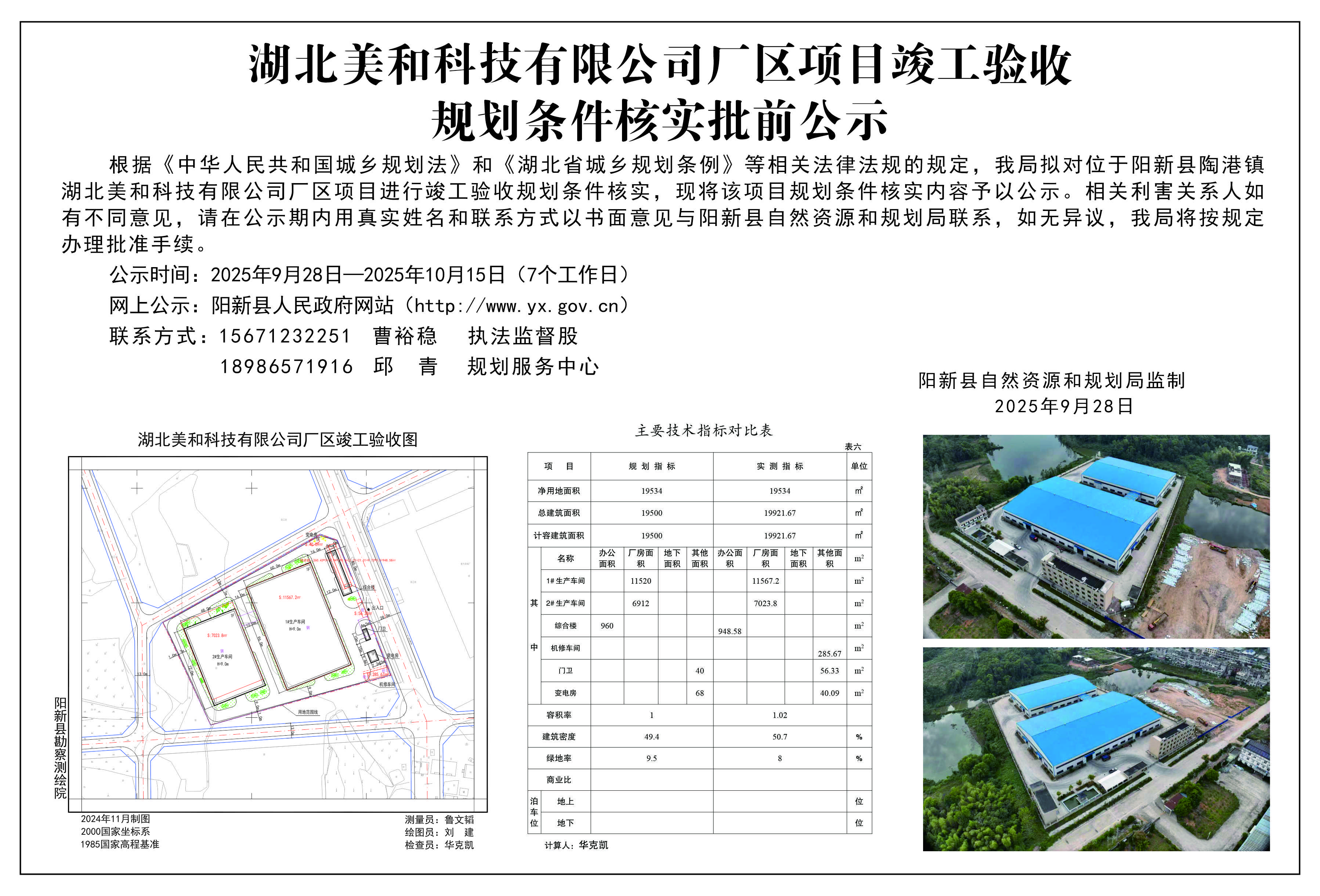 湖北美和科技有限公司厂区项目竣工验收规划条件核实批前公示