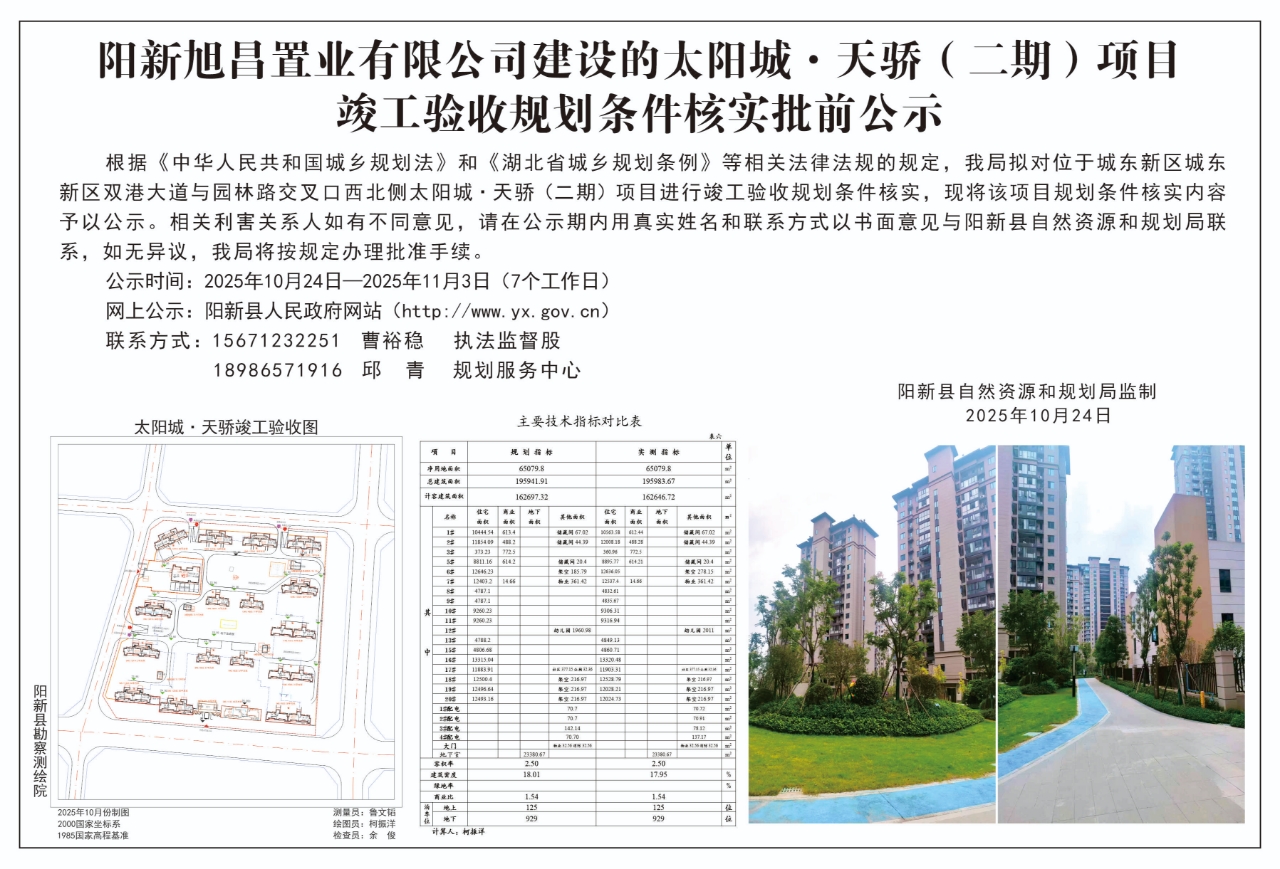 阳新旭昌置业有限公司建设的太阳城·天骄(二期)项目竣工验收规划条件核实批前公示