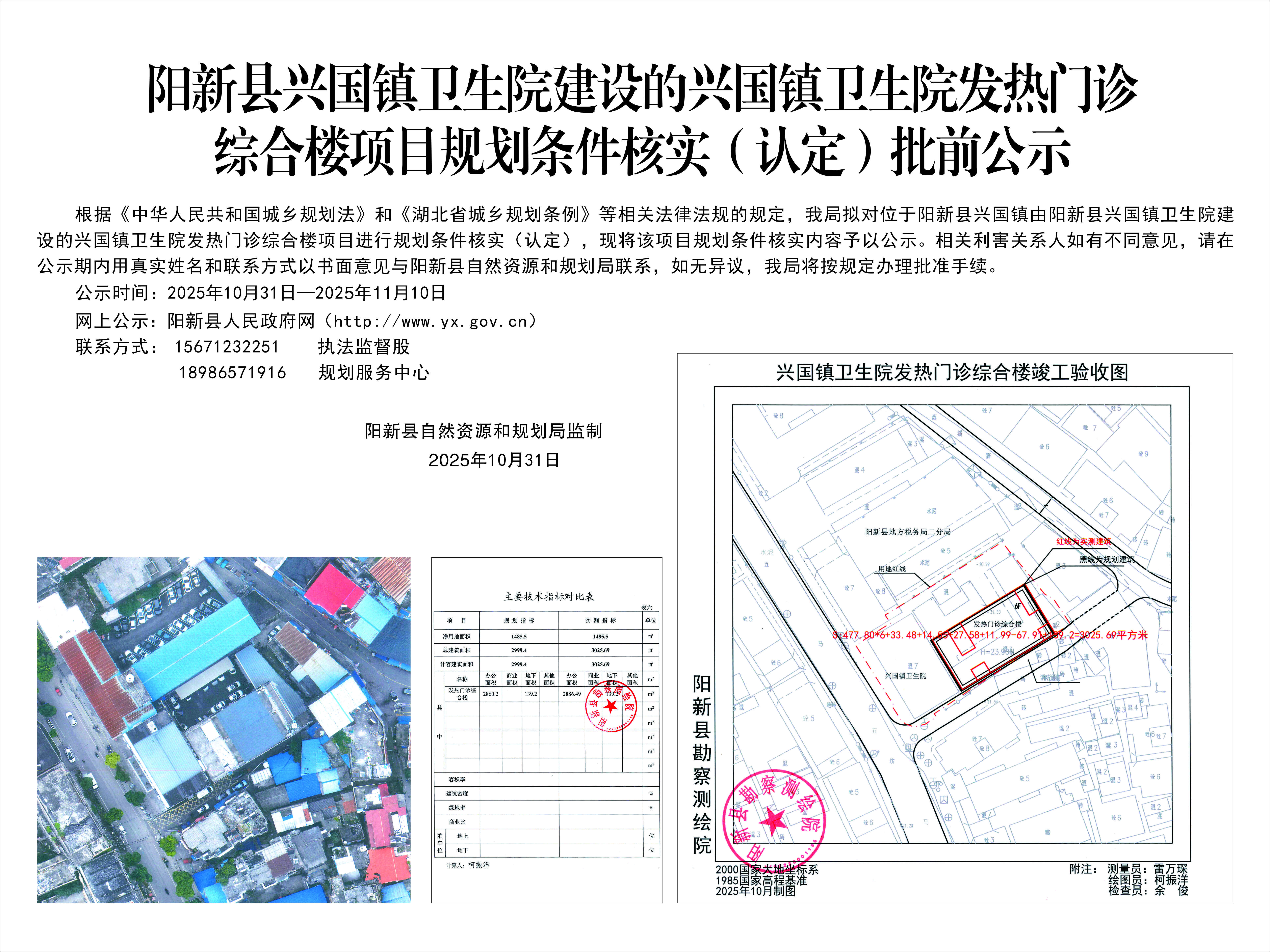 阳新县兴国镇卫生院建设的兴国镇卫生院发热门诊综合楼项目规划条件核实(认定)批前公示