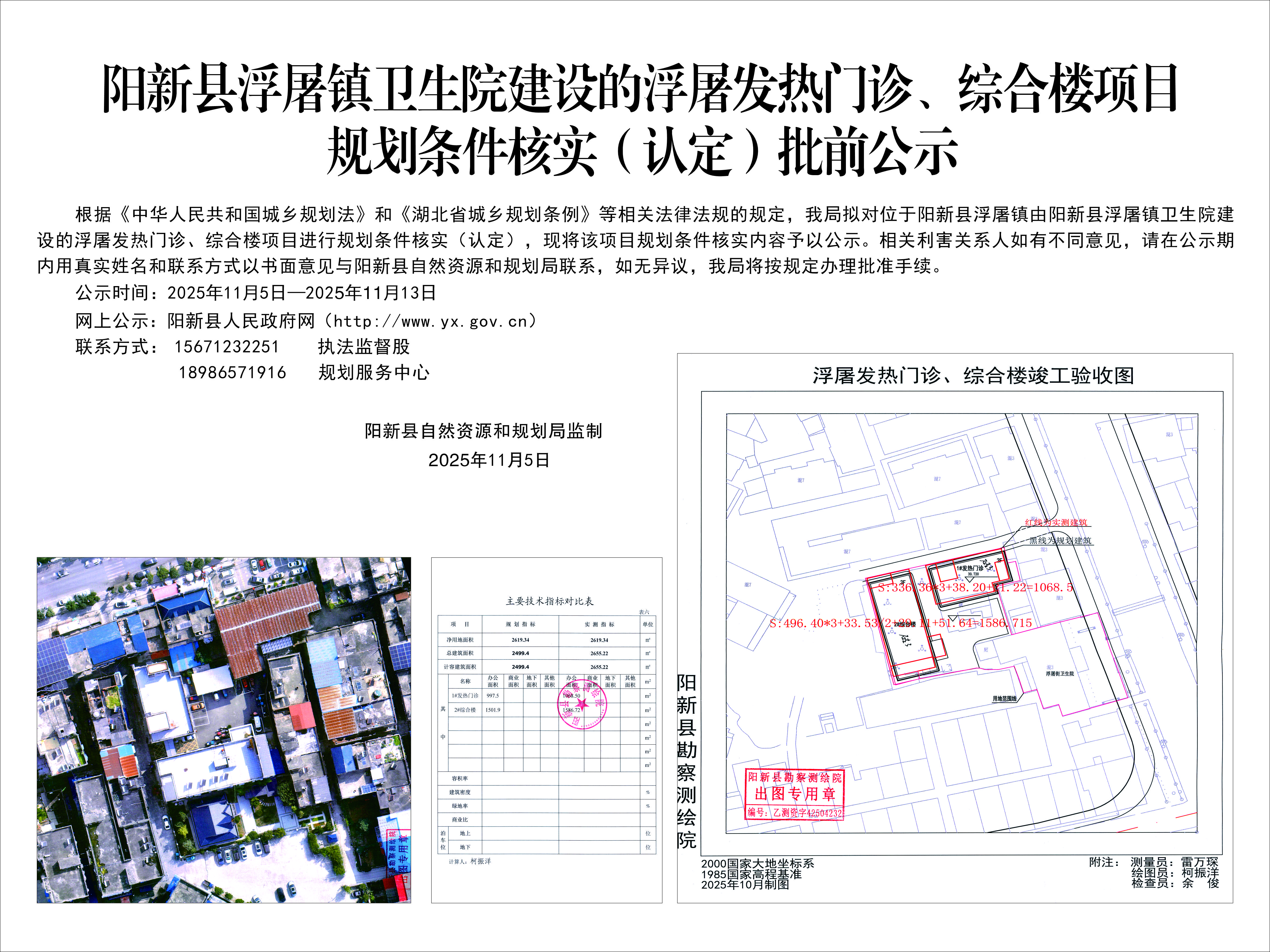阳新县浮屠镇卫生院建设的浮屠镇卫生院发热门诊项目规划条件核实(认定)批前公示