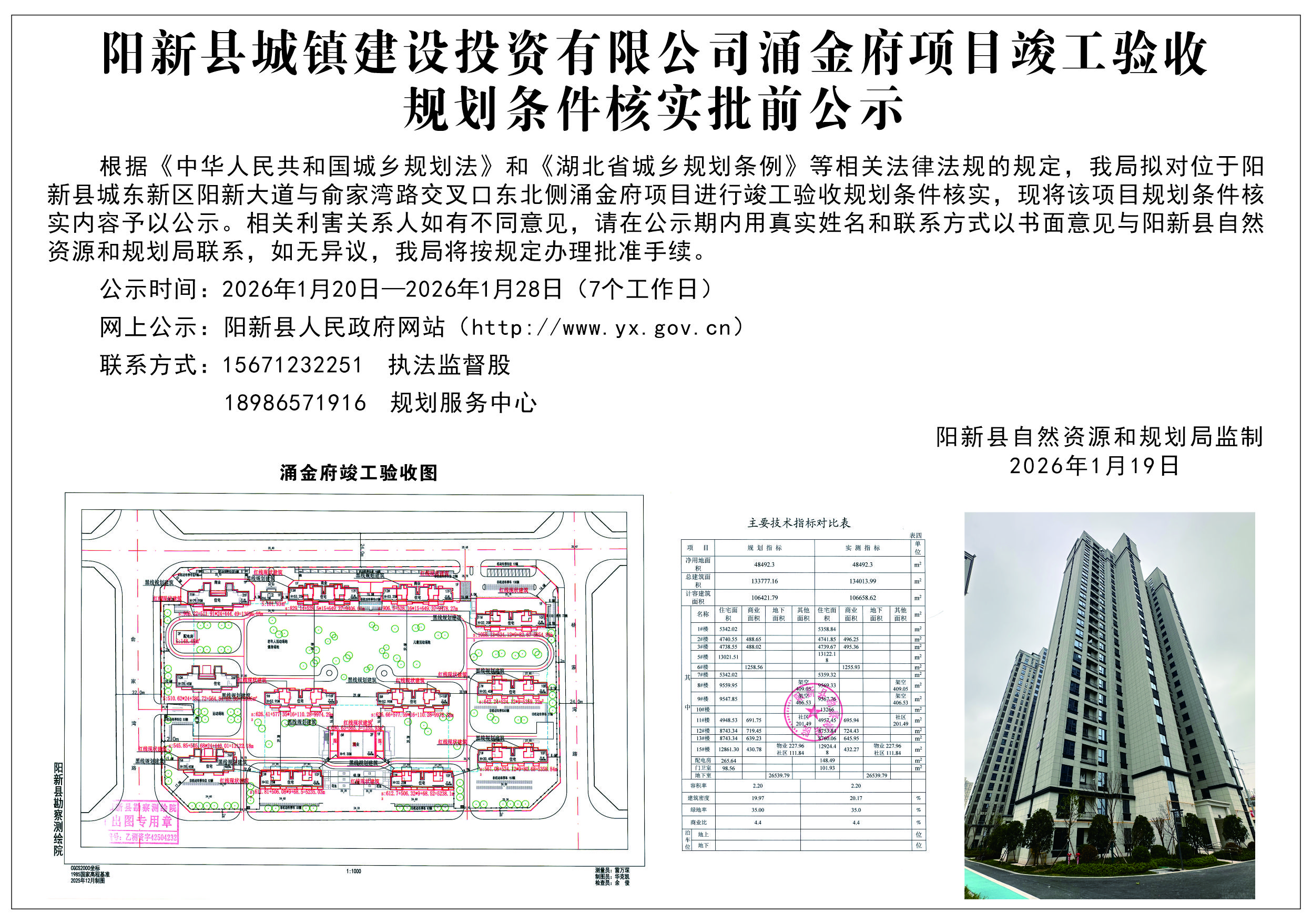 阳新县城镇建设投资有限公司涌金府项目竣工验收规划条件核实批前公示