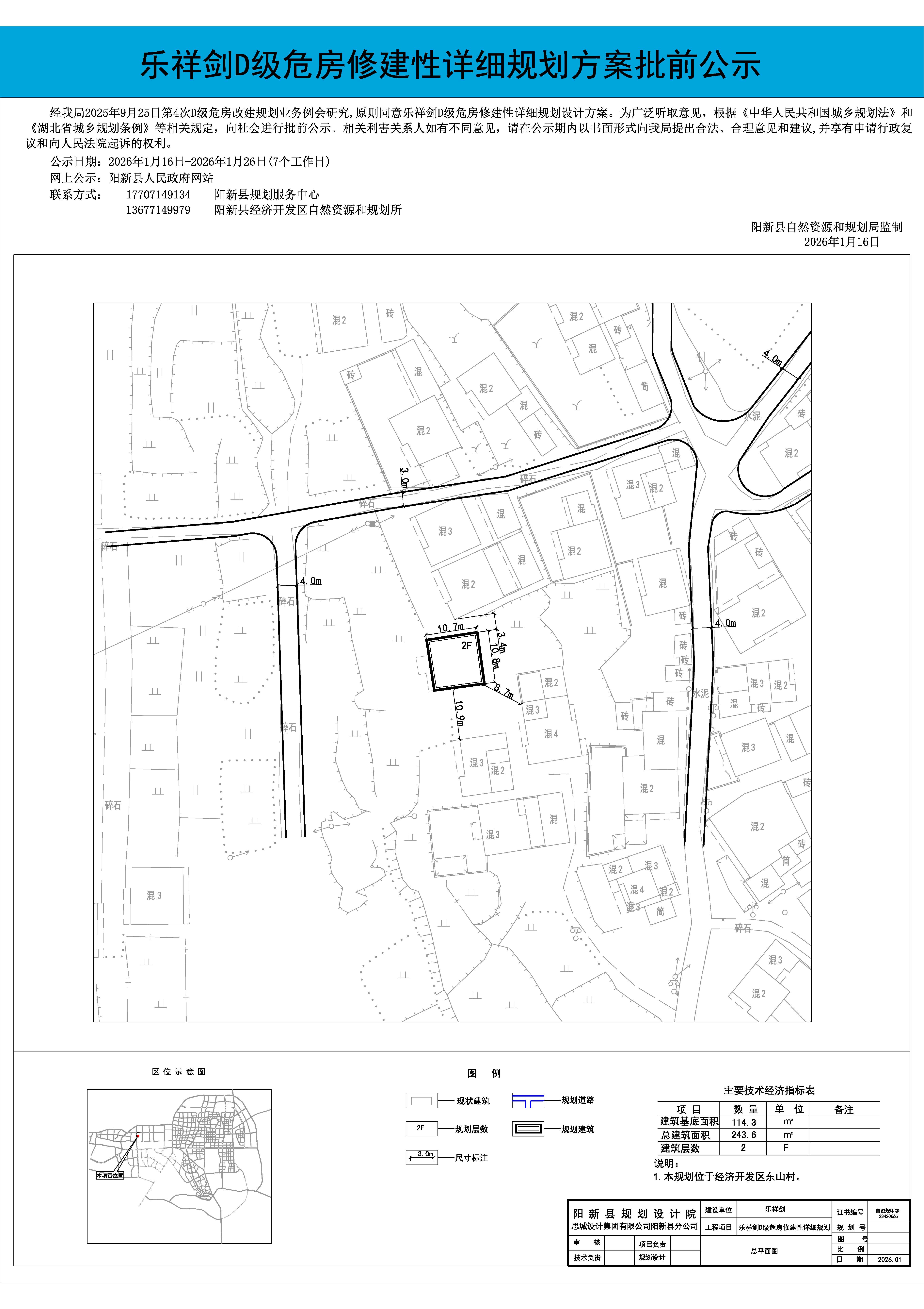 乐祥剑D级危房修建性详细规划调整方案批前公示