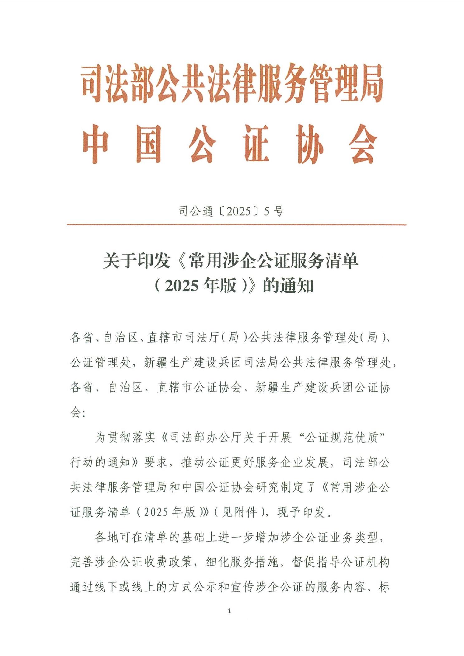 关于印发《常用涉企公证服务清单(2025年版)》的通知