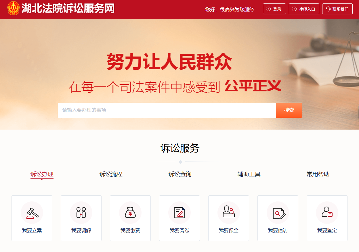 1.网上立案平台:湖北法院诉讼服务网(点击跳转)