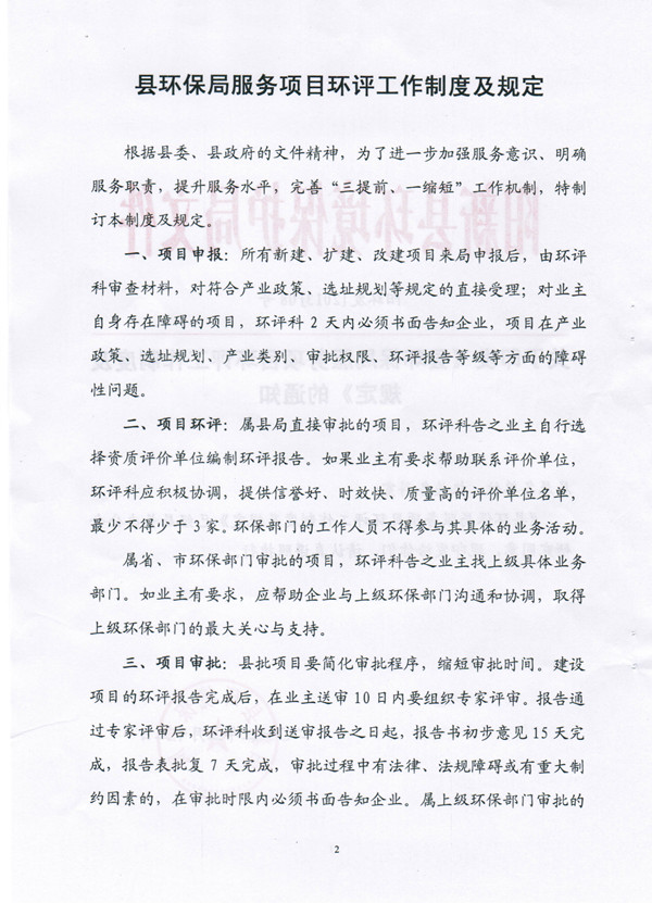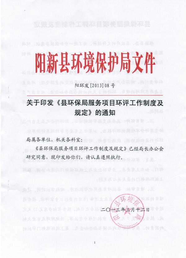 阳新县环保局服务项目环评工作制度及规定