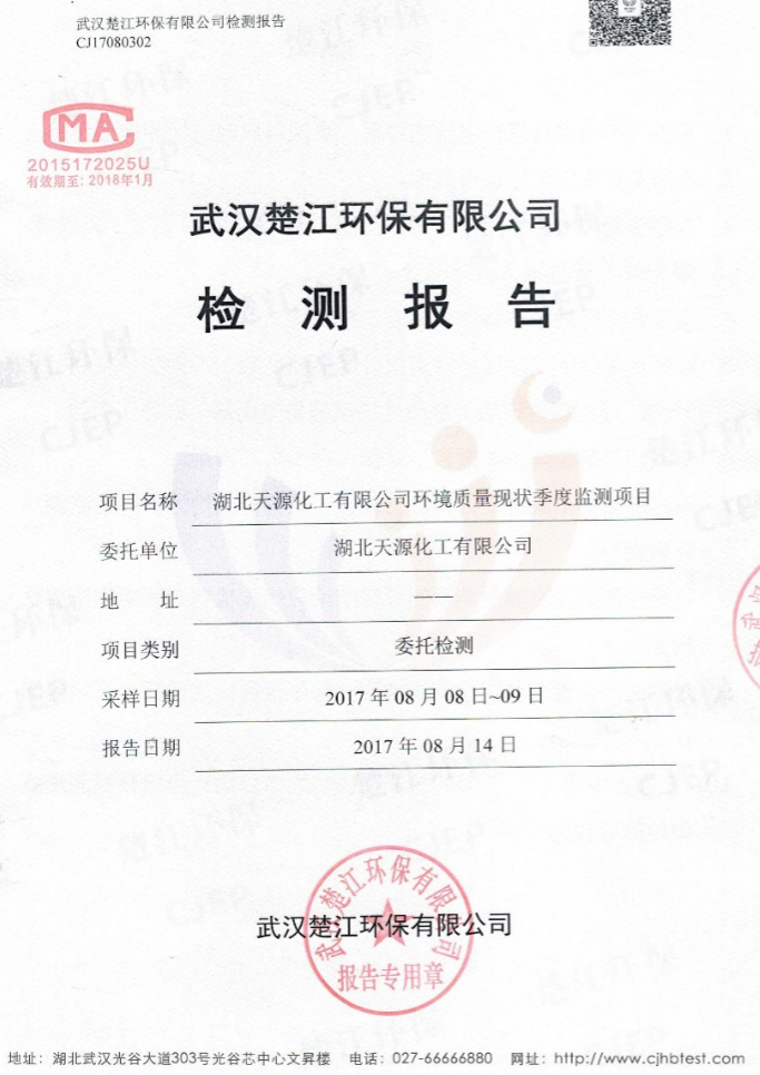湖北天源化工17年8月环境监测报告(详情请点击查看)