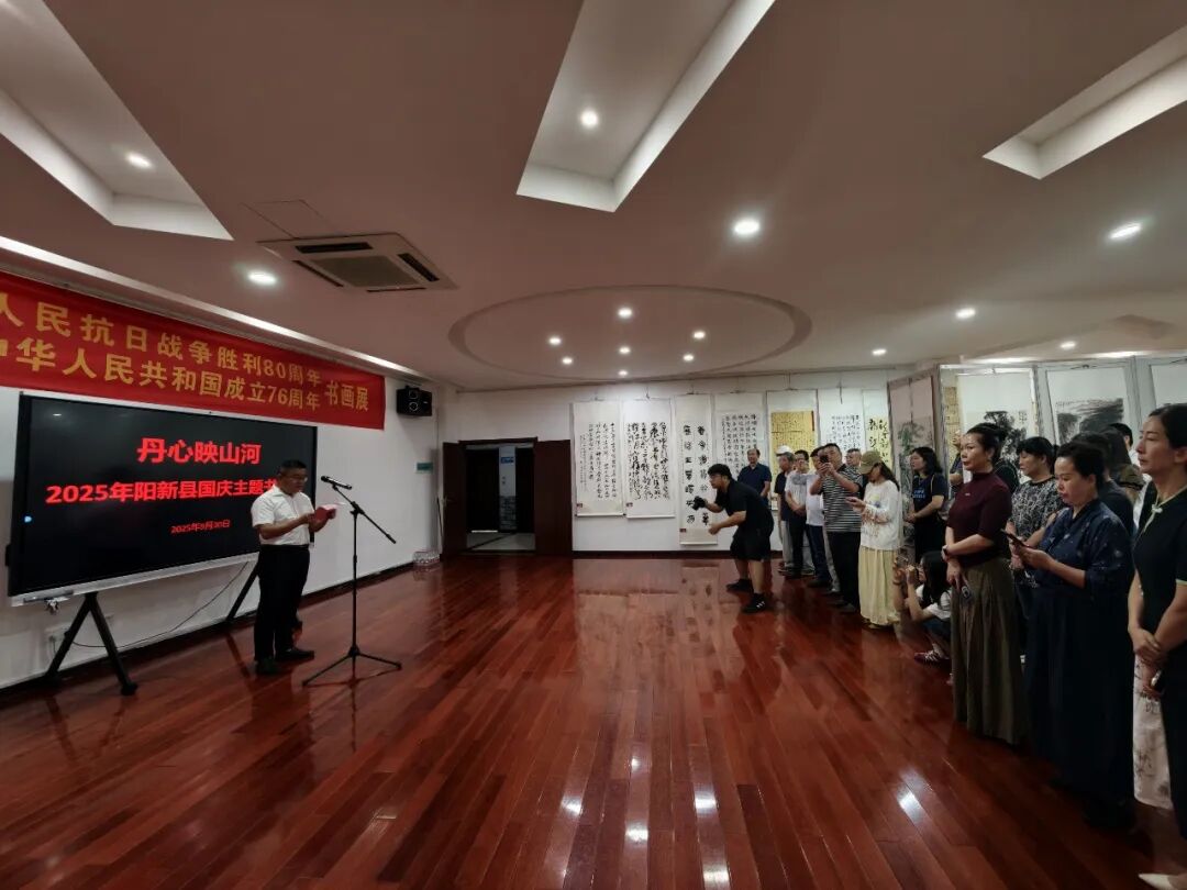 金秋送爽,翰墨传情。为纪念中国人民抗日战争胜利80周年、庆祝中华人民共和国成立76周年,由中共阳新县委宣传部指导,阳新县文化和旅游局、阳新县文学艺术界联合会主办,阳新文化馆承办的“丹心映山河——阳新县国庆主题书画展”,于9月30日上午在县文化馆隆重开幕。县有关部门领导、知名书画家及广大书画爱好者齐聚一堂,共同见证展览启幕。