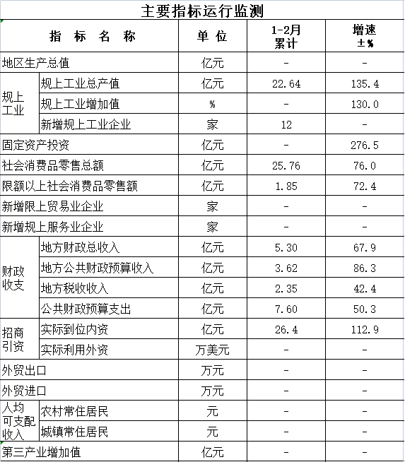 2021年1-2月经济社会主要指标运行监测