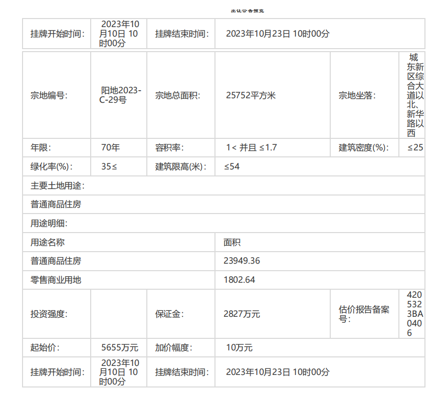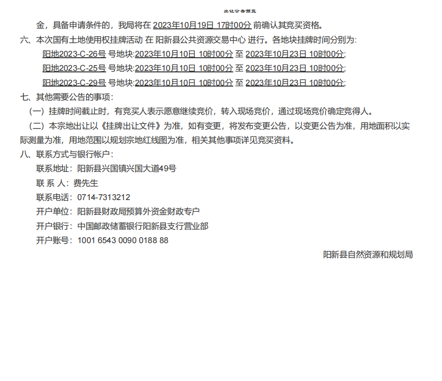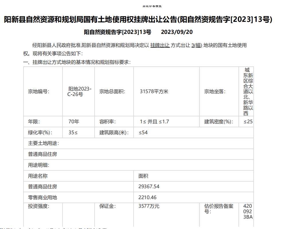 阳新县自然资源和规划局国有土地使用权挂牌出让公告(阳自然资规告字[2023]13号)