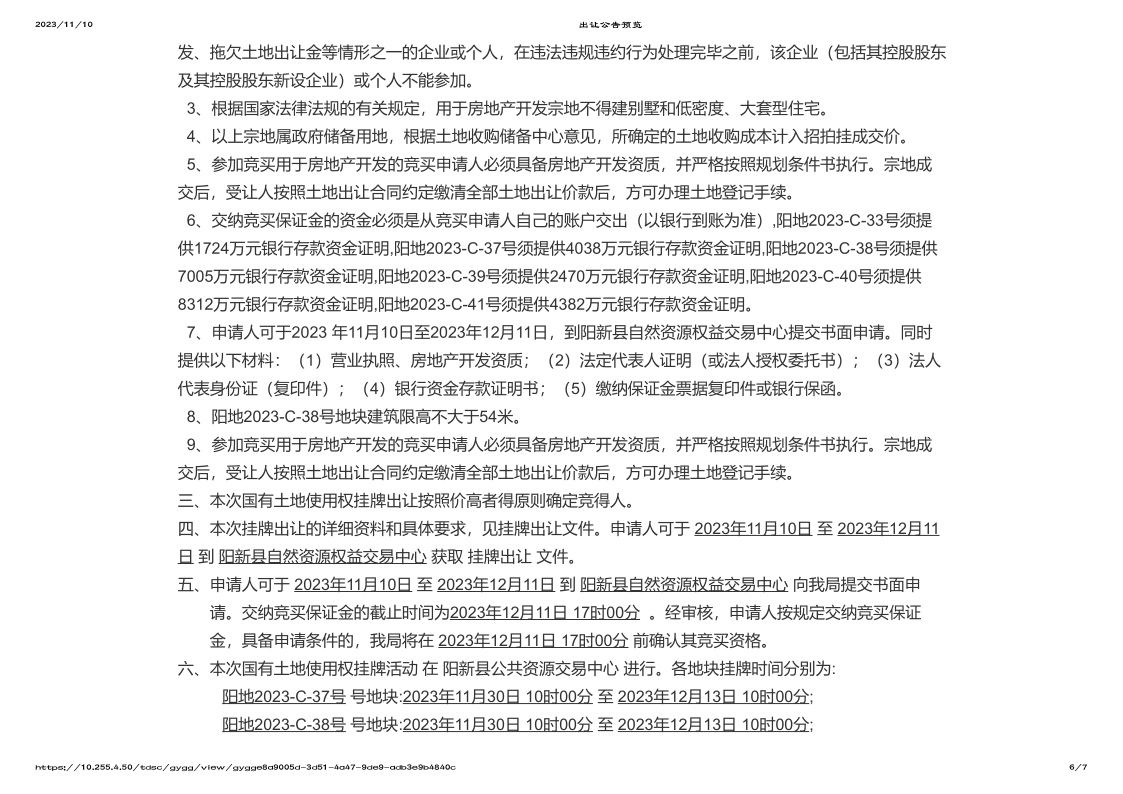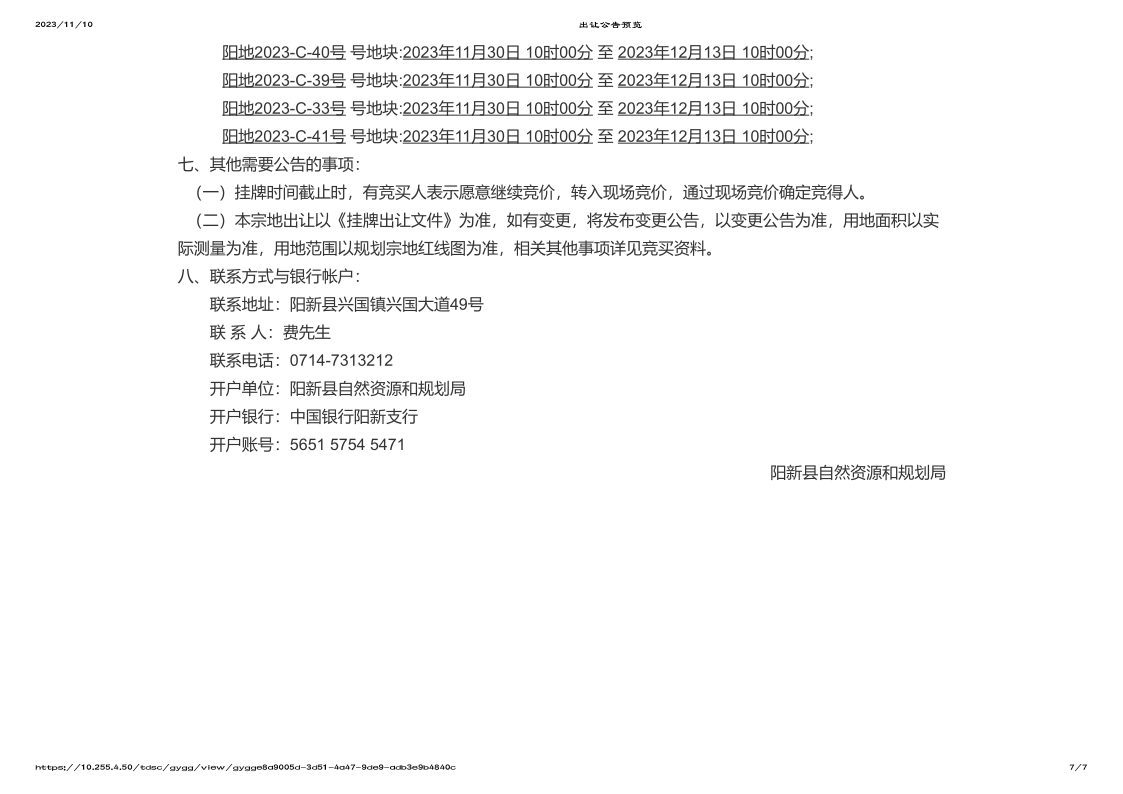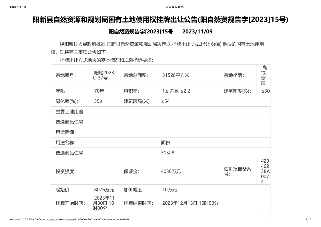 阳新县自然资源和规划局国有土地使用权挂牌出让公告(阳自然资规告字[2023]15号)