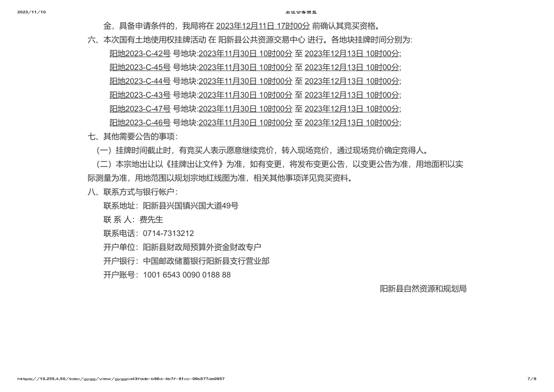 阳新县自然资源和规划局国有土地使用权挂牌出让公告(阳自然资规告字[2023]16号)