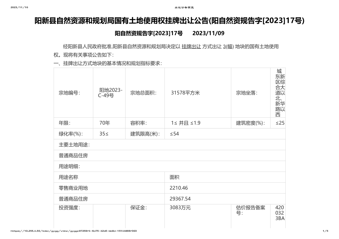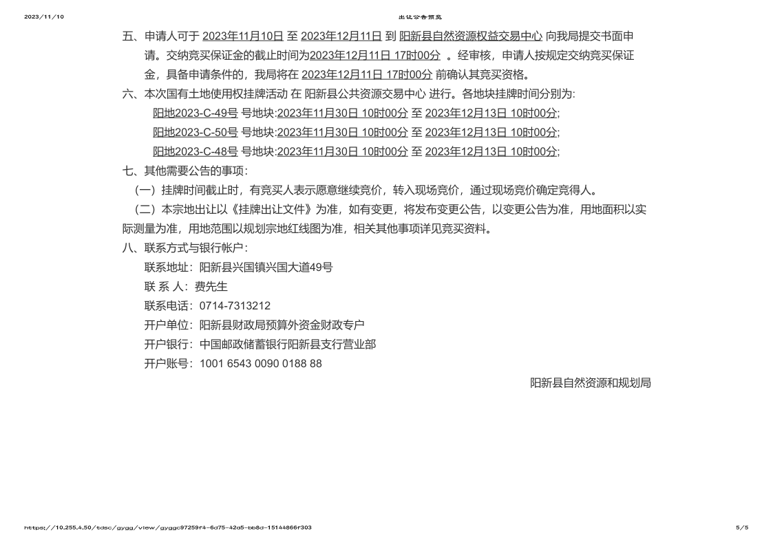 阳新县自然资源和规划局国有土地使用权挂牌出让公告(阳自然资规告字[2023]17号)