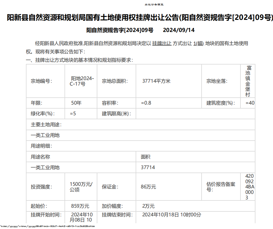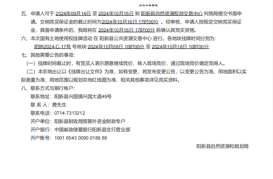 阳新县自然资源和规划局国有土地使用权挂牌出让公告(阳自然资规告字[2024]09号)变更