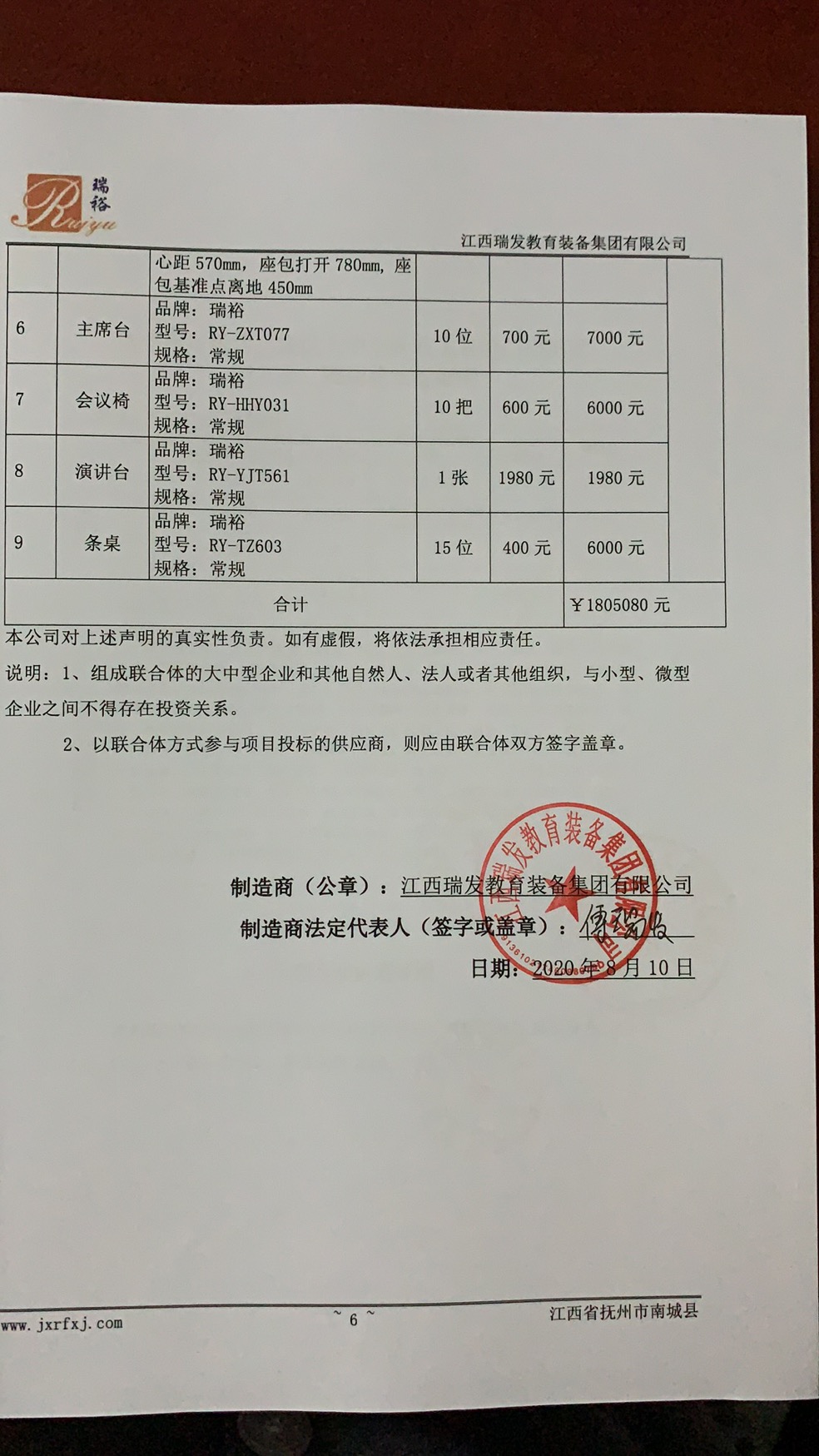 供应商名称:江西瑞发教育装备集团有限公司