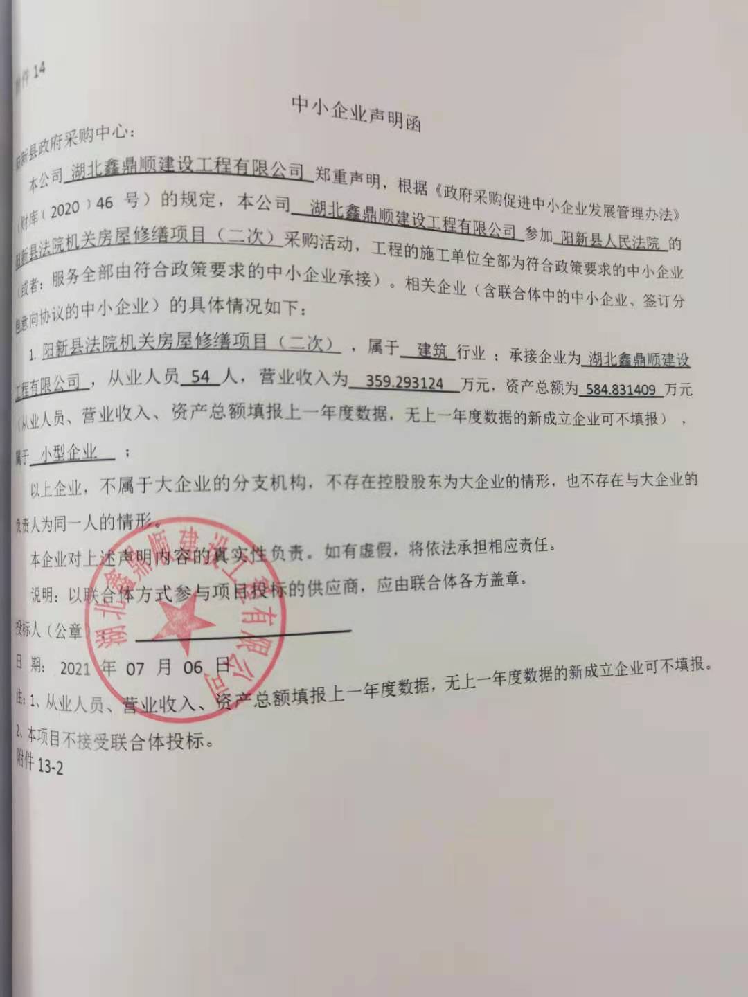 2.中小企业声明函