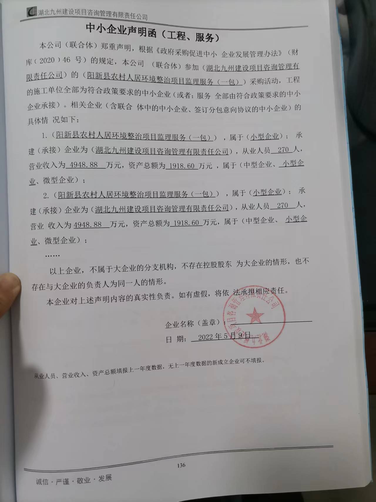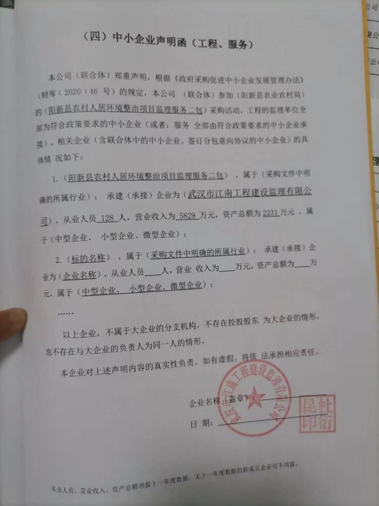 十、中小企业声明函