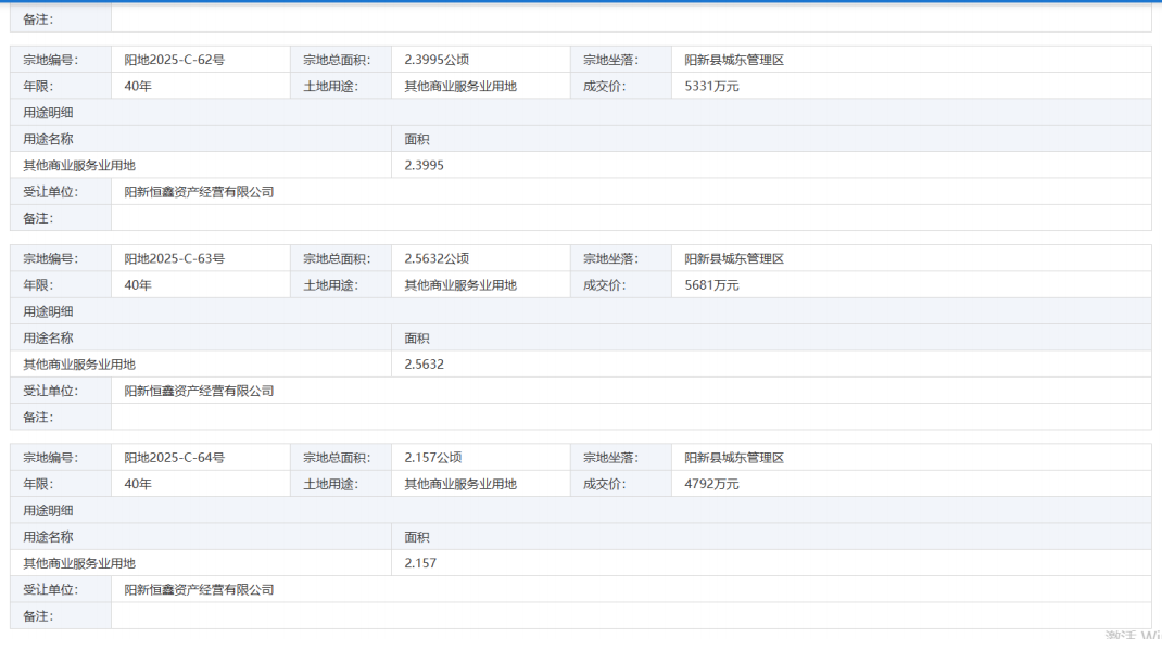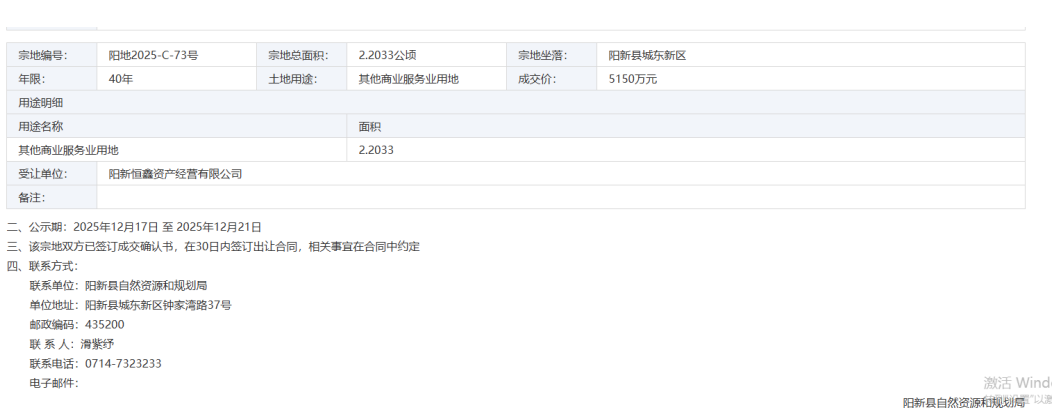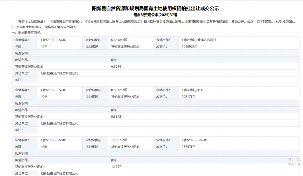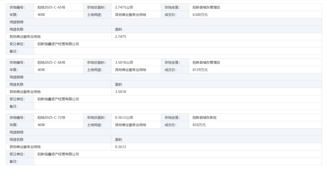 阳新县自然资源和规划局国有土地使用权招拍挂出让成交公示 阳自然资规公字【2025】37号