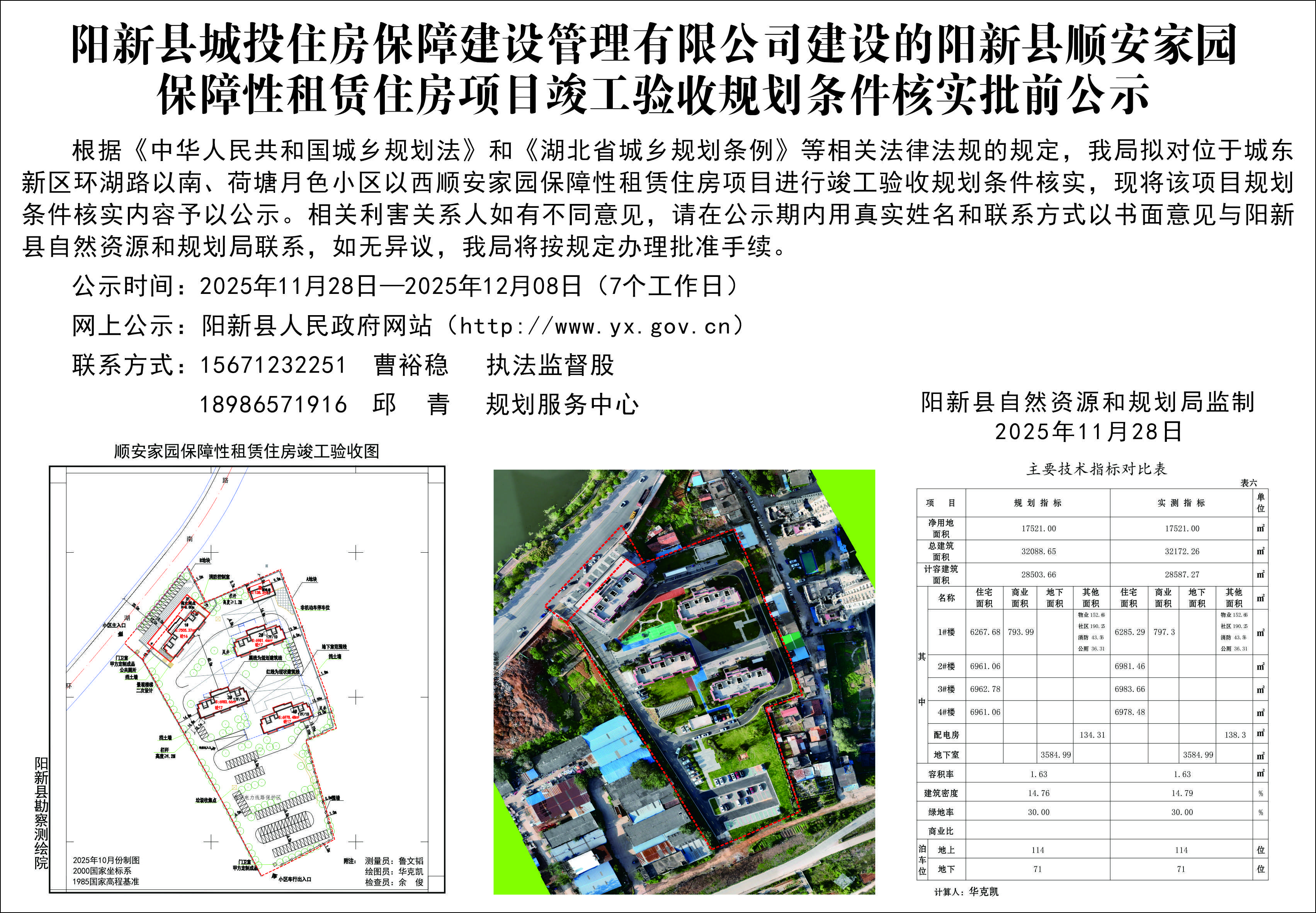 阳新县城投住房保障建设管理有限公司建设的阳新县顺安家园保障性租赁住房项目竣工验收规划条件核实批前公示