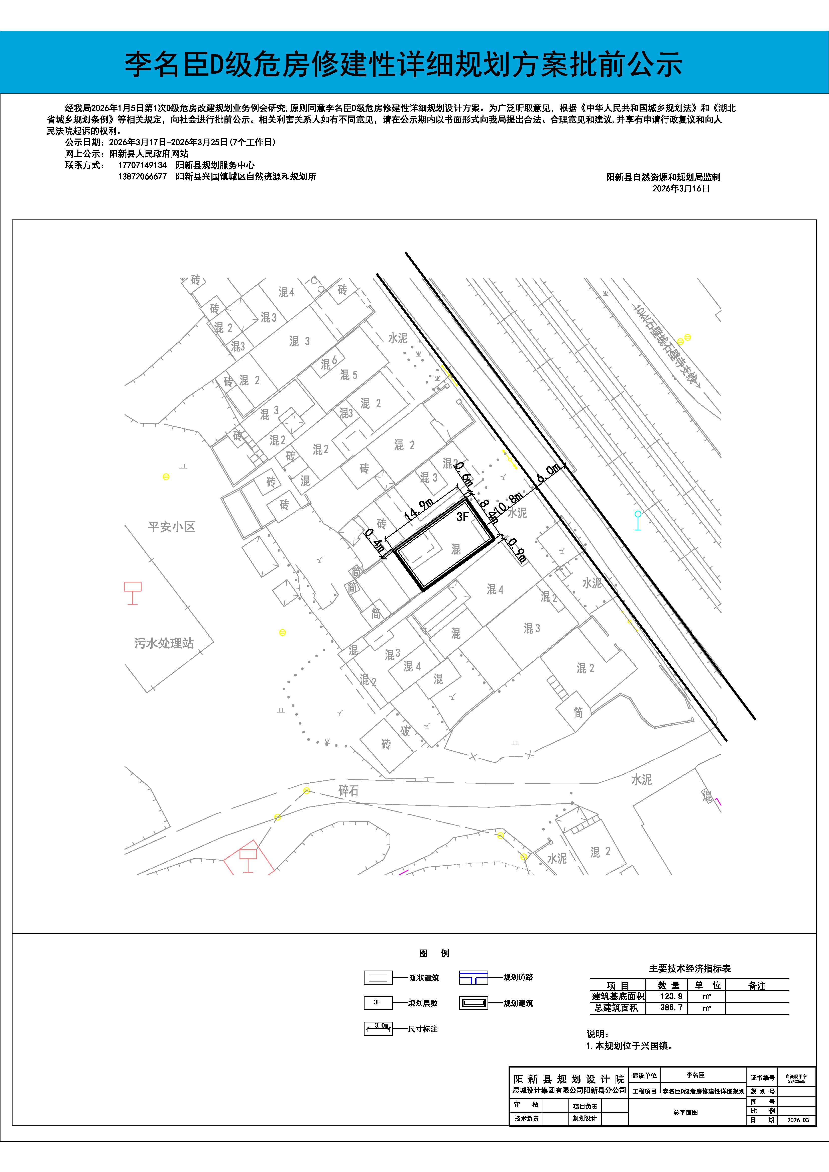 李名臣D级危房修建性详细规划方案批前公示