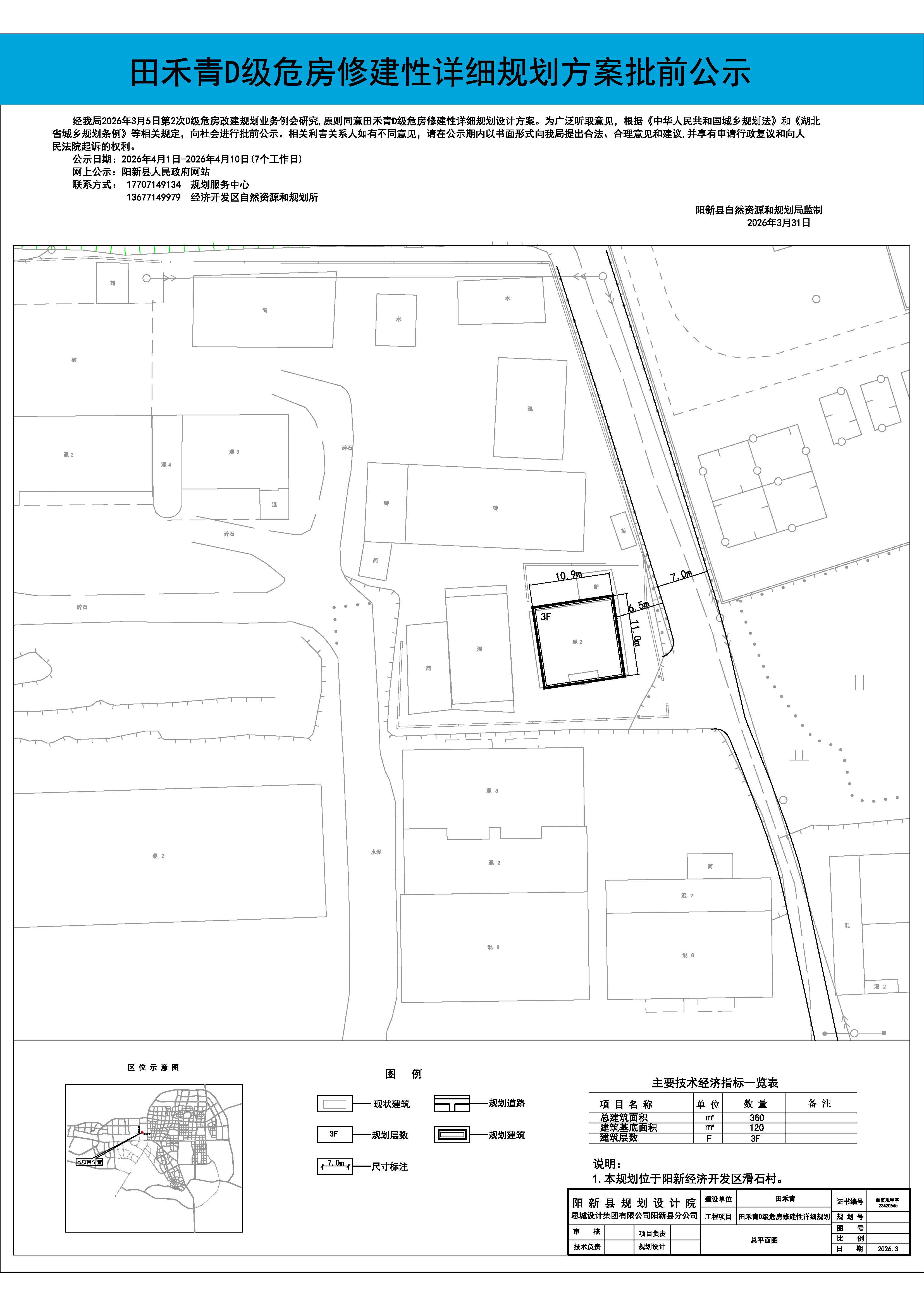 田禾青D级危房修建性详细规划方案批前公示