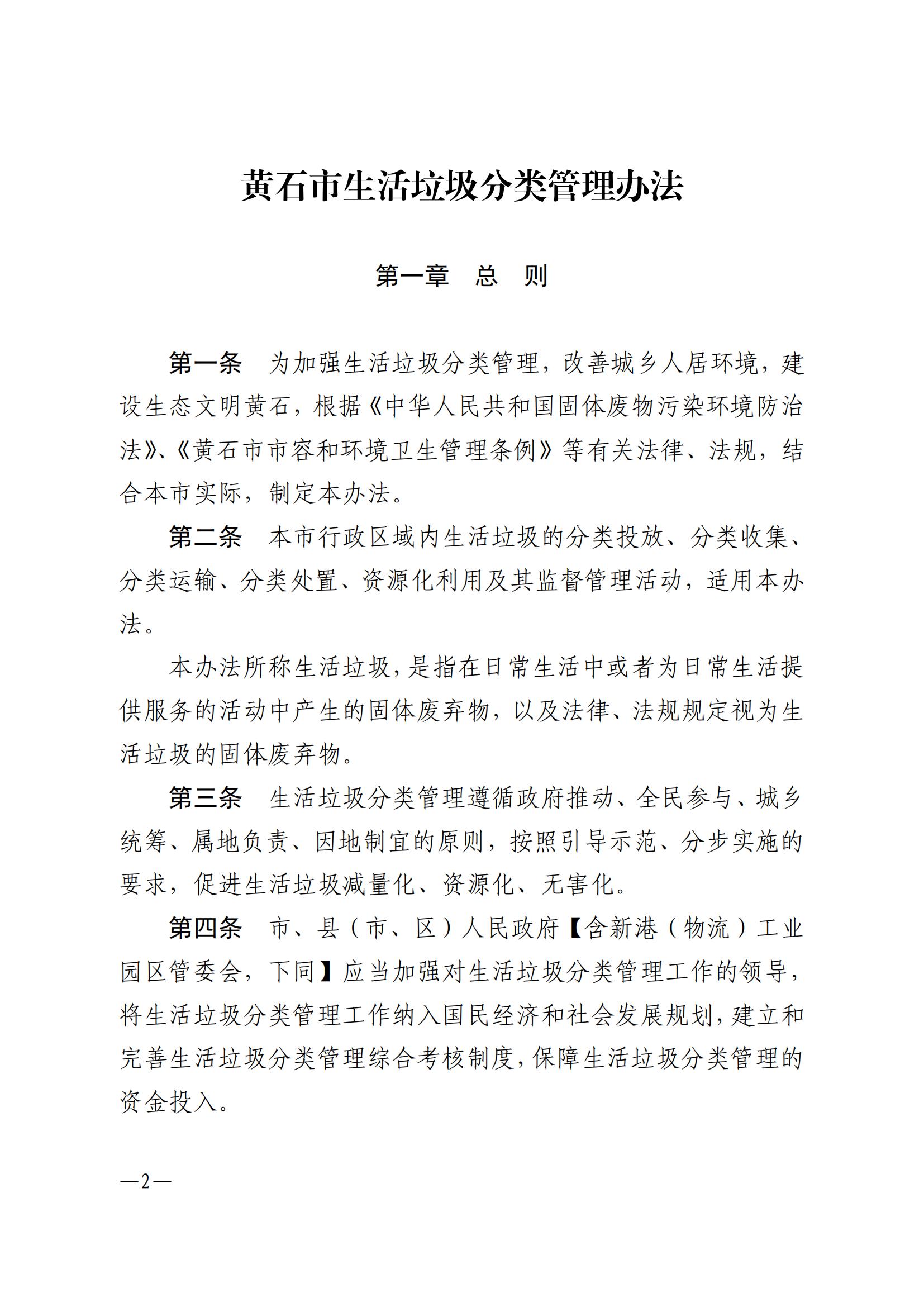 《黄石市生活垃圾分类管理办法》