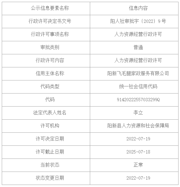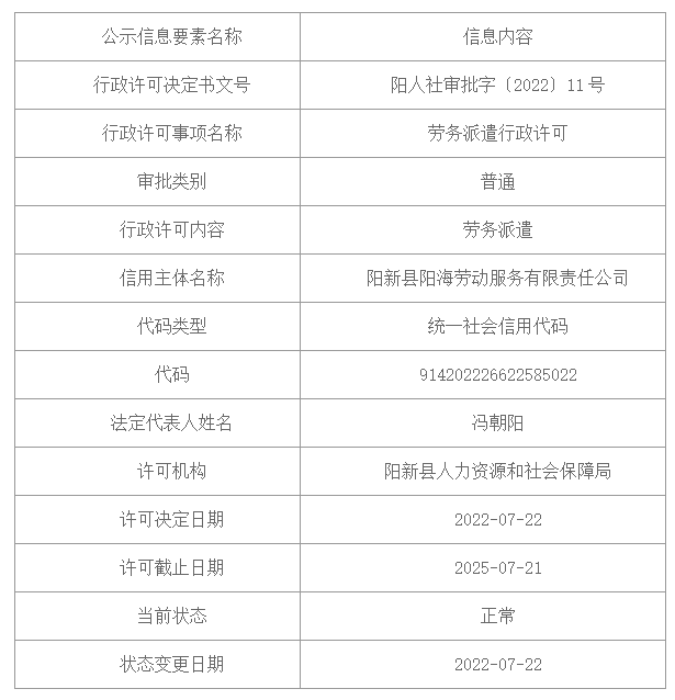行政许可决定书(阳人社审批字〔2022〕8~12号)