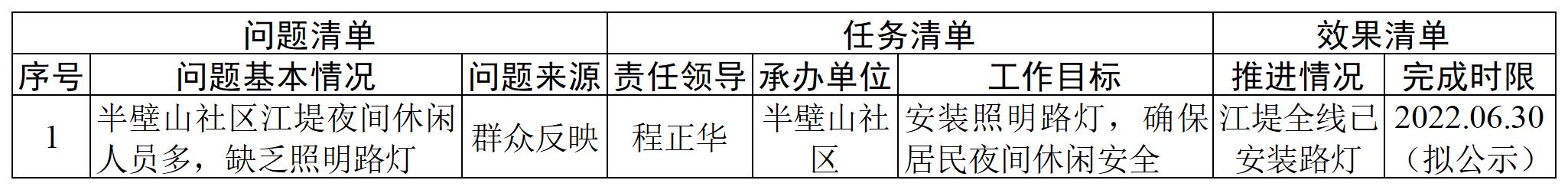 半壁山管理区领导班子开展“下基层、察民情、解民忧、暖民心”实践活动“三张清单”